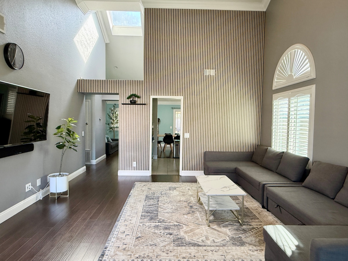 The ultimate California getaway awaits at this lovely 3-Bedroom 2-Bathroom single story Villa in Hacienda Heights! Quiet hillside neighborhood but WALK distance to EVERYTHING, such as shopping mall, supermarkets, regional park and high rated restaurants! Tesla Supercharger and Drive Thru Starbucks within half mile. 30 min. driving to Disneyland & Knott's Berry Farm, local or FWY. Each room is bright and airy, brand new 65-inch Smart TV in the high ceiling living room.