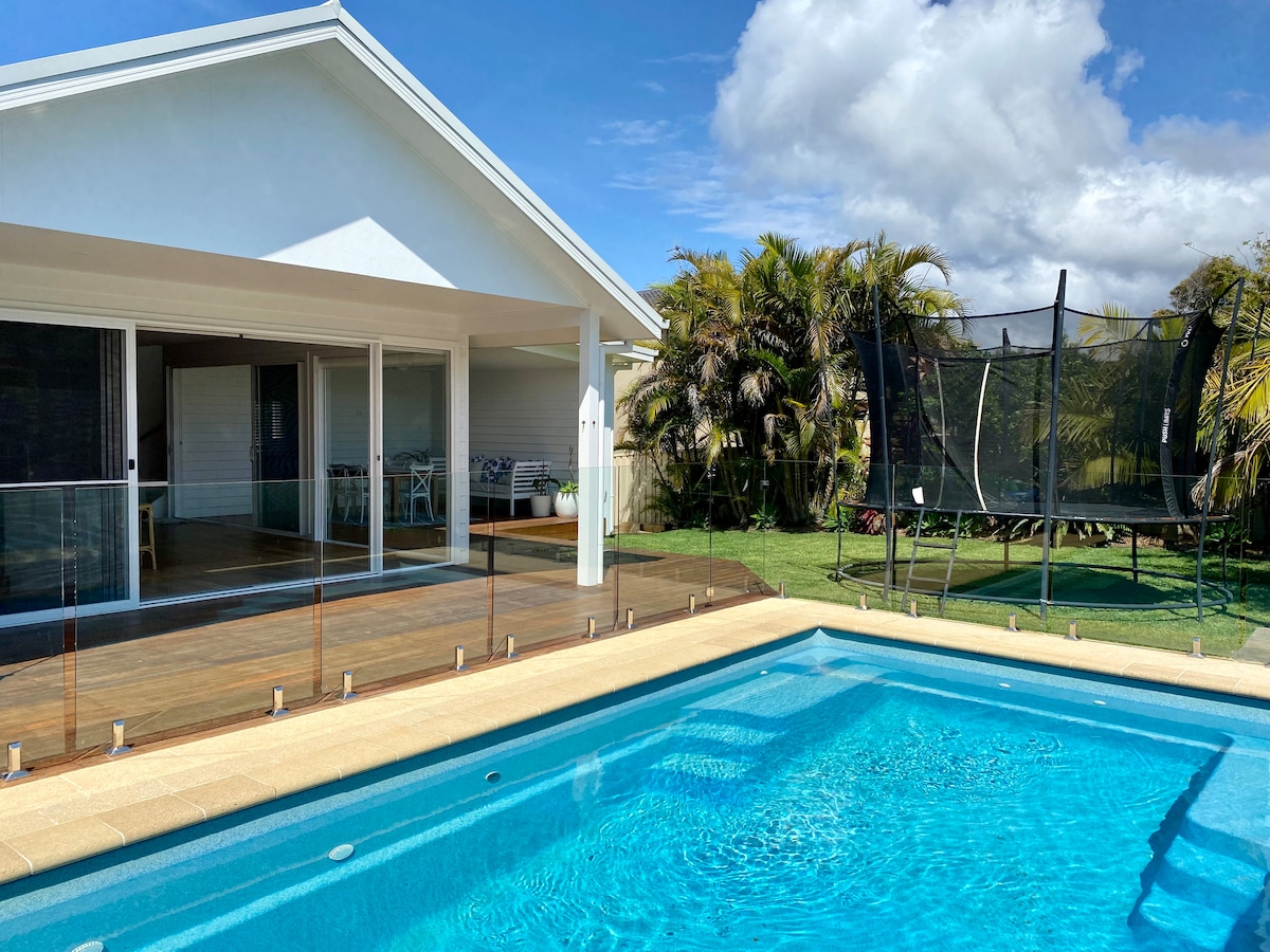 Where relaxation meets luxury. Nestled between lush greenery and tranquil Burgess Beach. Unwind in the outdoor Jacuzzi or take a dip in the sparkling saltwater pool. This stunning retreat includes a large deck, daybed, BBQ and outdoor dining. The house comes fully equiped with everything you need to have a great stay . Perfectly positioned, 100m from BurgessBeach & 5 minute walk to One Mile Beach. There are many town attractions, restaurants & shops, all a few minutes drive away.