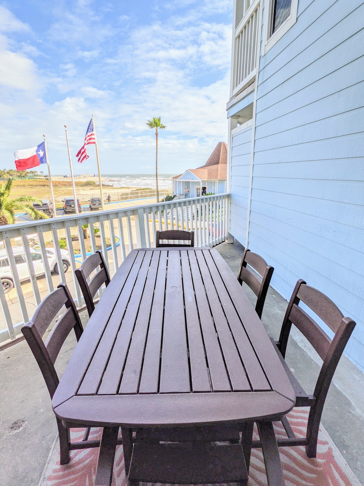 Newly remodeled with a cozy beach cottage feel. My Condo is ON THE BEACH. Don't cross the busy highway with your family. Room for 6 people. Queen Adjustable bed and queen sleeper sofa with 2 bunk beds. New Kitchen, 2 flat screen TV's. Free WiFi and NetFlix. Complex has a large heated tropical pool with 3 Hot Tubes. Private access to pool and beach. Property is gated with security. A safe to store your valuables is free for your use. 10 minutes from Moody Gardens or Pleasure Pier. Handicap ramps