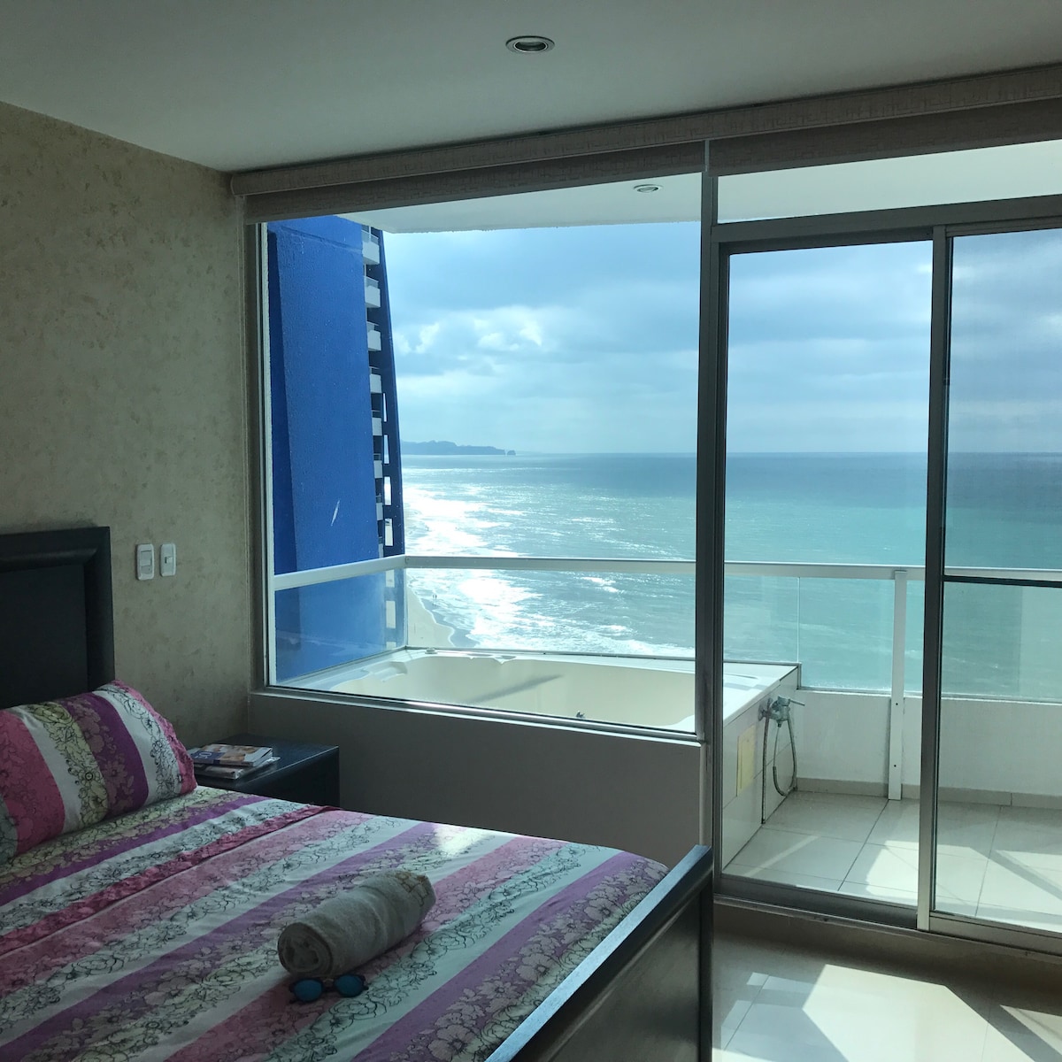 Make some memories at this unique and family-friendly place. The best you can find on the Ecuadorian coast, Grand Diamond is the most luxurious, modern and safe building in Tonsupa. Five hours from Quito by road. The apartment is on the 3th floor, balcony-terrace with private whirlpool for five people. Ocean view from every room. Unlimited WiFi. Communal areas with giant pools, whirlpools. Children's Water Park, Full Gym, Golf Courses, Tennis and Volleyball