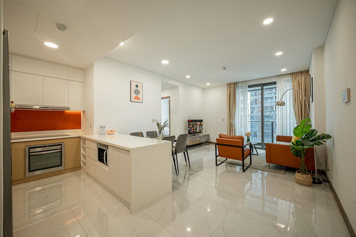 Modern luxury apartment, fully equipped. high-quality furniture, located on Masteri Block 2 Building's 15th floor- a well known high-class community for foreigners in Ho Chi Minh City. Just minutes away from shopping malls, bars, cafes & restaurants in Thao Dien. Has 2 bedrooms, 2 WC which fit a whole family, group of friends. Guests will enjoy free high speed wifi, Netflix, swimming pool & gym. Long-term lease and car rental available. 24/24 security staffs. Please contact us for details.