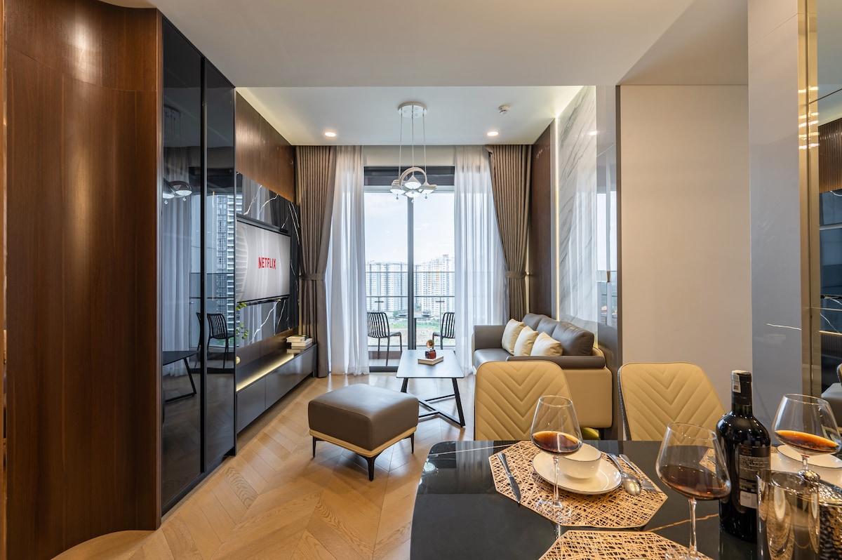 🌅 Wake up to soft morning light and lush garden views from your private balcony at Diamond Island, one of Saigon’s most peaceful and luxurious residences. With elegant décor, warm lighting, and a cozy chic ambiance, this home brings a perfect sense of calm — your quiet oasis amid the city’s vibrance. Whether you’re here for work or relaxation, every detail is thoughtfully prepared for your comfort: premium linens, a Netflix-ready Smart TV, and a fully equipped kitchen for your favorite meals.