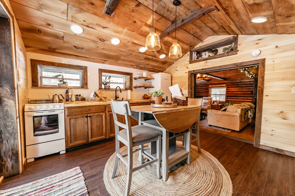 Your cozy, mountain retreat awaits. Settle by the fire in this thoughtfully renovated log cabin, located in the heart of the White Mountains & less than 10 minutes from downtown North Conway's local shops, restaurants & adventures. Just 5 minutes from hiking Mt. Chocorua, paddling Lake Chocorua & exploring the scenic Kancamagus Highway. Featuring a bedroom, loft, full bathroom, kitchen, tea/coffee bar, fireplace, outdoor shower, firepit & more. Bask in the restorative magic of cabin living.
