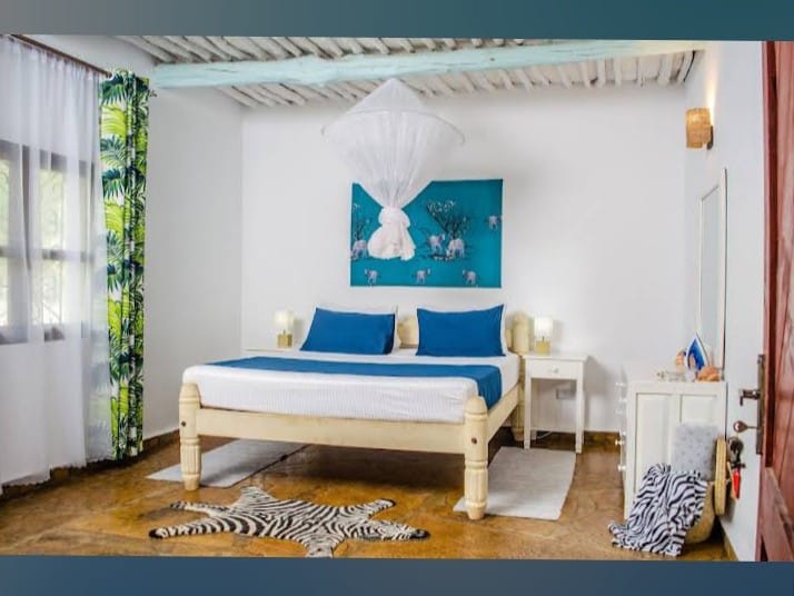 Are you looking for a serene place to unwind while enjoying the tranquility of mother nature’s work around you? Well, Karimu Beach Hive is the perfect place for you! The 1 bedroom cottage is situated in a private compound along Diani Beach road just opposite Diani Reef Resort. It has a private parking, kitchen, a living room equipped with a Sound System, 55'' UHD TV, free Wi-Fi, a dining room/laptop station and 1.5 bathroom. Its 5 min walk to the beach, Leisure Golf Club and Diani Beach Hospital