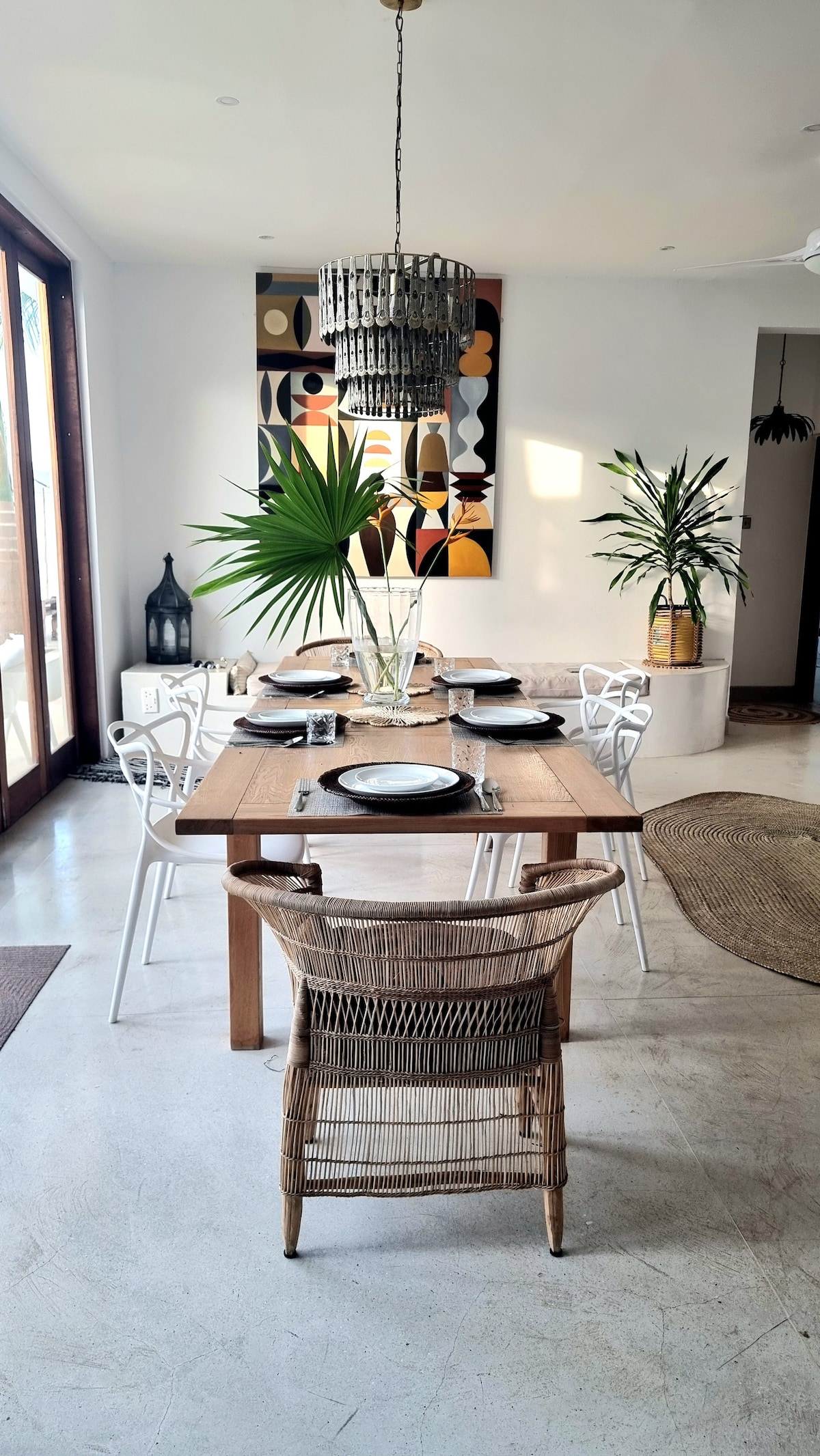 A simple, less is more interior decor 1bedroom house in Central Diani. Spacious, bright and perfect for short or long stays. A comfortable large sofa bed chair in the living room, flat screen smart TV, fast wifi and a dinning area that can be used as a study/work table. A fully equipped kitchen, queen size bed in the bedroom, a clean bathroom stocked with towels and toiletries. High roof with ceiling fans, extra standing fans, dehumidifier & large louvre glass windows for air circulation.