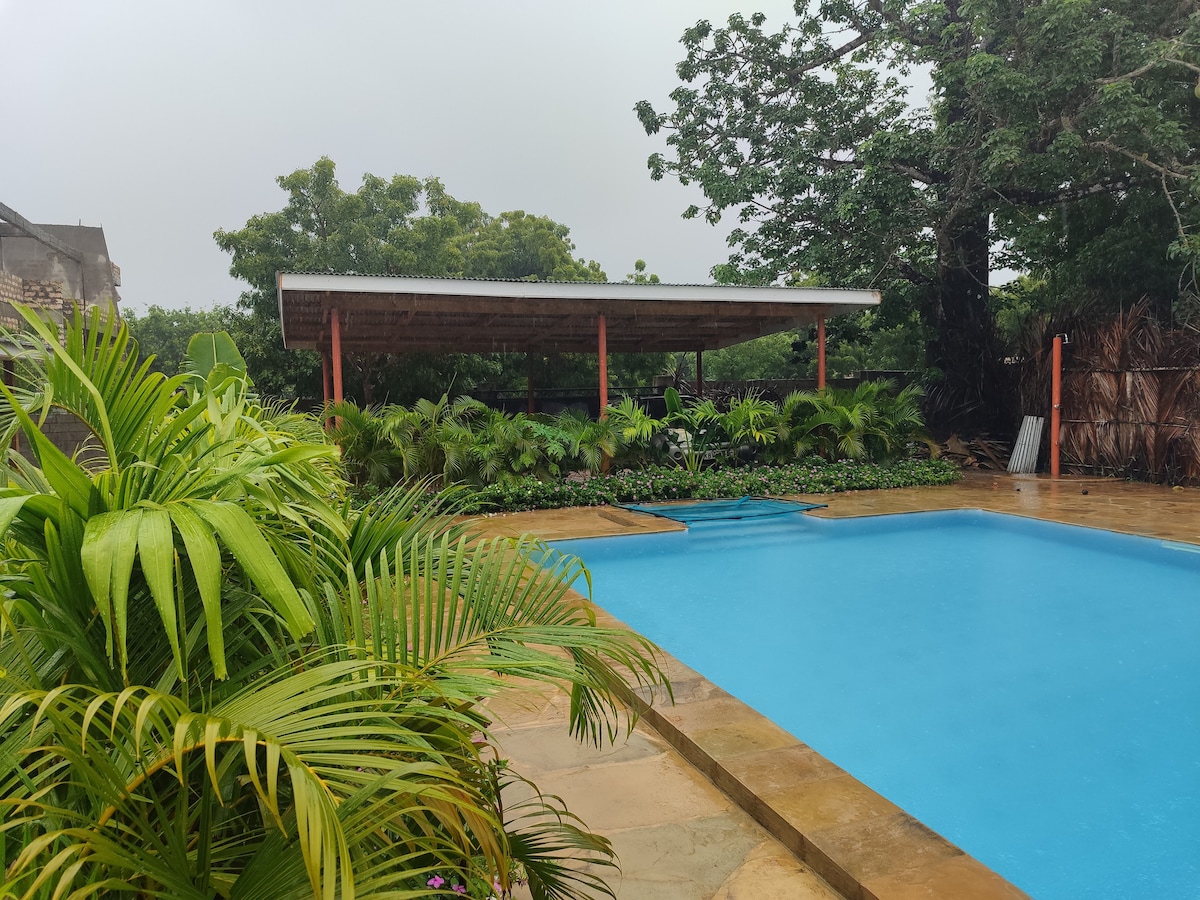 Genießen Sie Kenia in privater Atmosphäre. Es erwartet Sie ein gepflegter 3600 m² Garten, Pool, Haupt- und Gästehaus zur alleinigen Nutzung. Privater Koch. W-LAN.Wir haben ein Batterie-Backup-System (Bei Stromausfall funktioniert alles außer die Klimaanlagen). Unser Haus liegt nicht direkt am Strand. Der traumhafte Strand Diani Beach ist in nur 8 bis 10 Gehminuten von uns zu erreichen (650 M). Unsere Villa ist nur auf Airbnb buchbar.