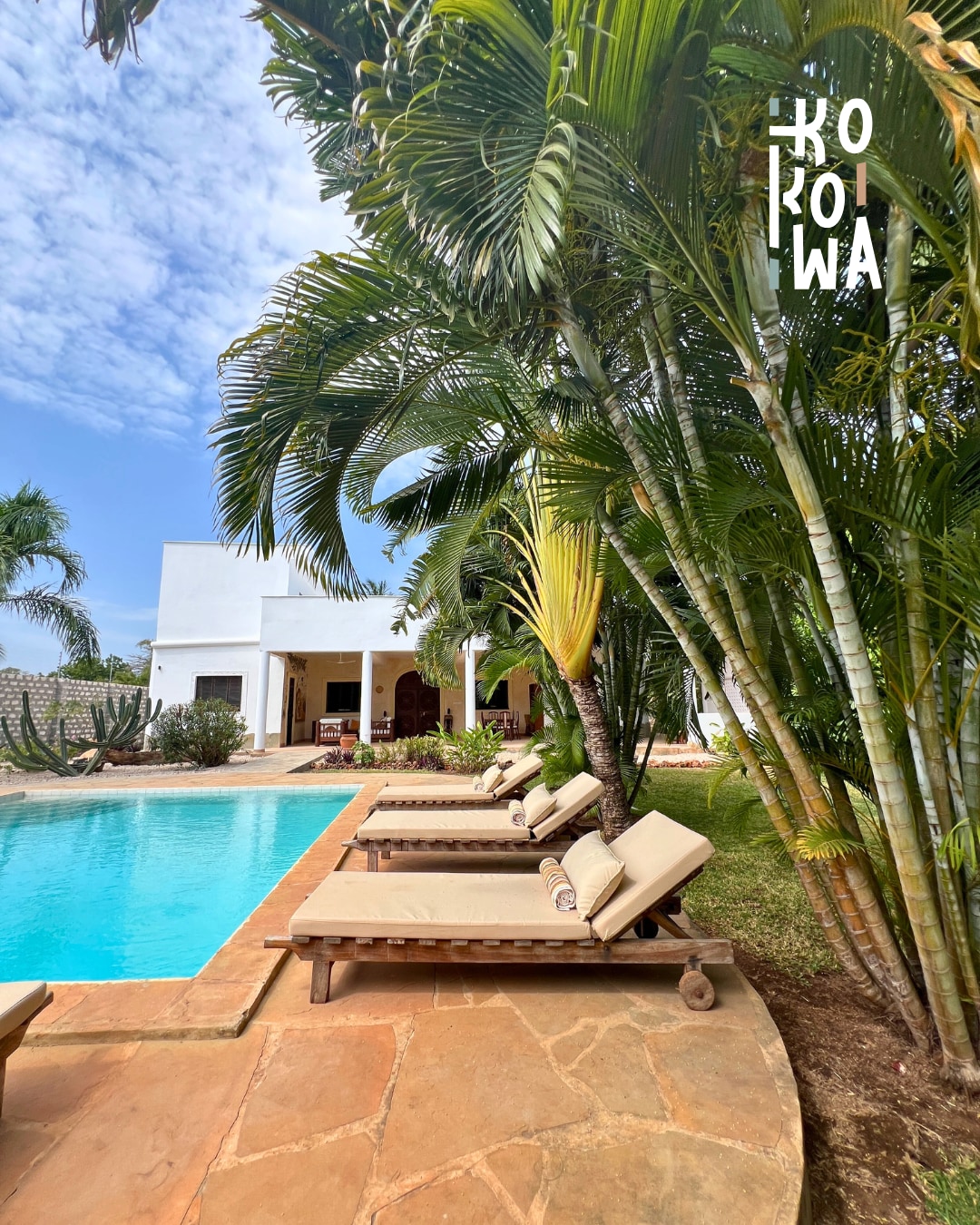 Brand new private 'Backdoor villa'. - 6 bedrooms available (cheetah, elephant, giraffe, rhino, buffalo, lion room) - a 10 minute walk to the beach (Indian ocean) - a spacious private pool with salt water Continental BREAKFAST is INCLUDED (coffee, tea, milk, eggs, bread, jam, butter etc). Also available fruits such as mango, banana, papaya. Gluten-free food on request. All the staff included: Private chef (available up to 10 hours a day) + cleaning lady + gardener/pool service.