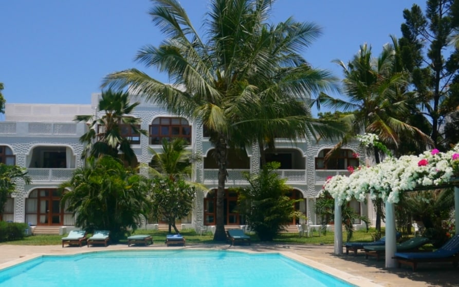 Sukuma Guest House blends the serenity of Lamu architecture. Located on Diani Beach Road, 5 minutes from white sandy beach and shopping center, this beautiful property is set in a landscaped garden, has 4 self-contained units, swimming pool, and a roof top Yoga platform.