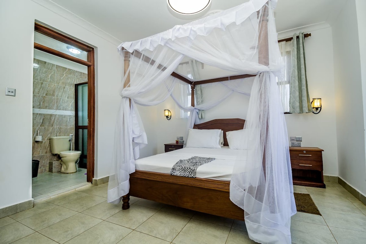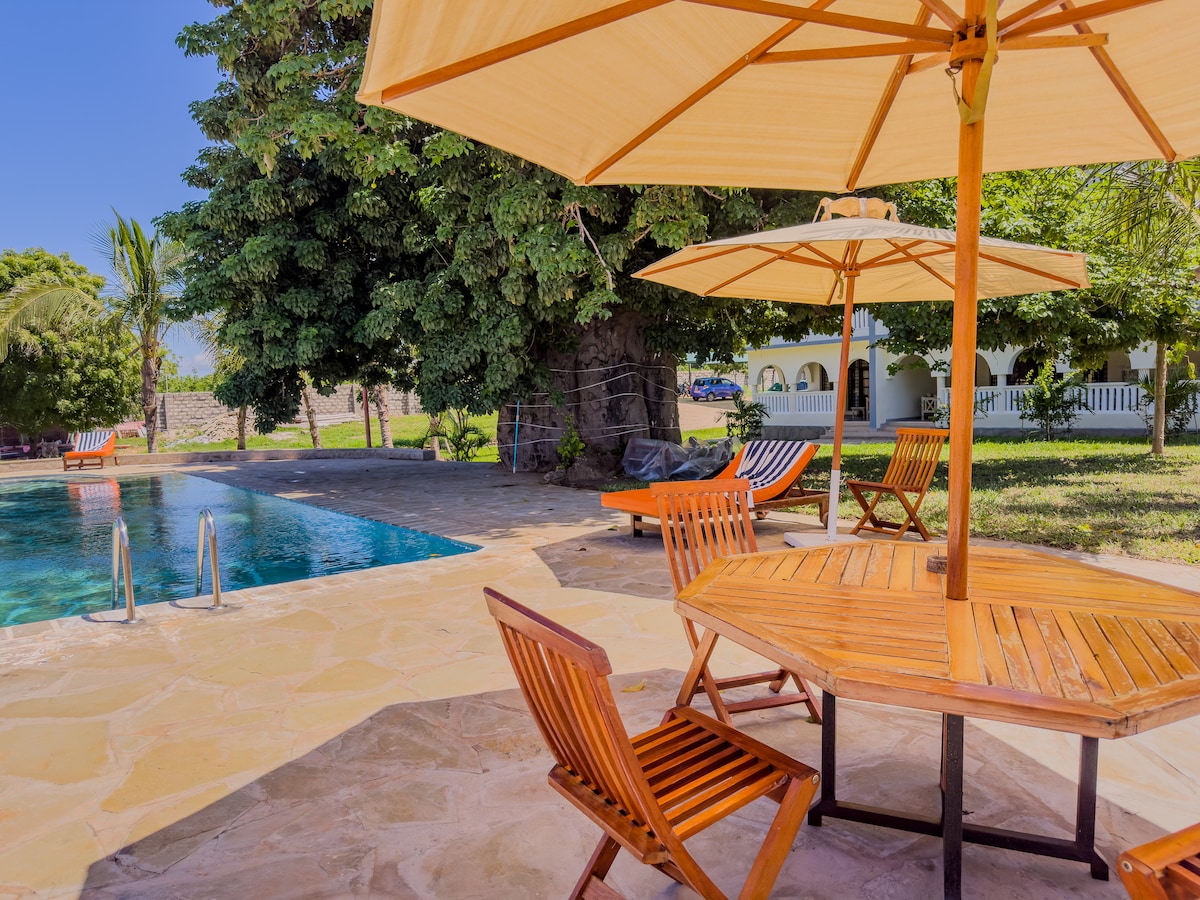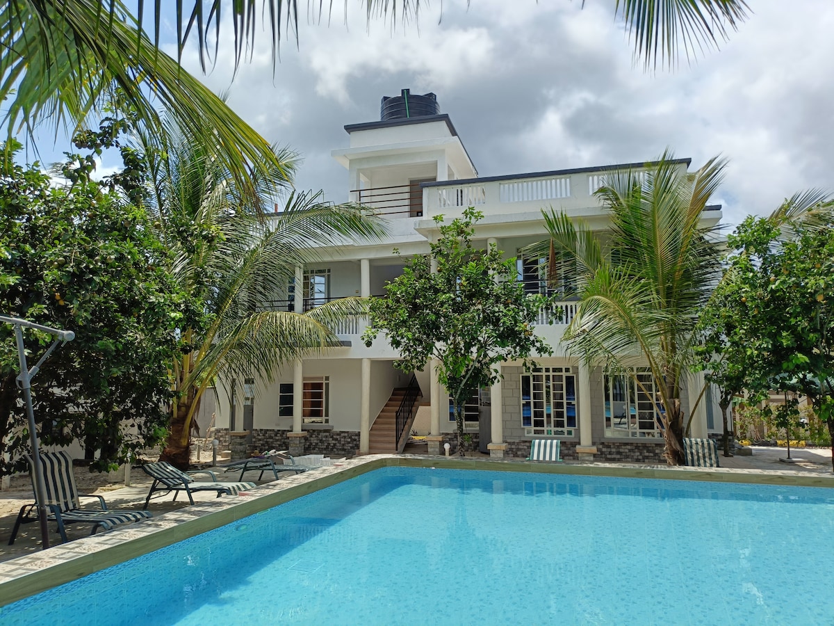 Bora bella is a cool place for total relax in a quite private villa with welcoming swahili people in the Neighbourhood. The house has 4 spacious rooms all ensuite, a spacious 2 living room and 1 modern kitchen. The compound is nice for relax or even a barbeque. we also have a 2 bedroom house which can be used for guest staff.
