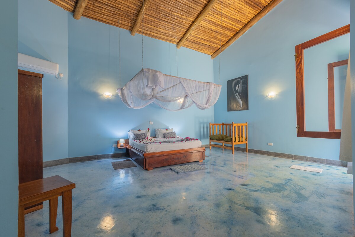 This beachfront cottage on Kenya’s South Coast offers rustic charm and ocean views, perfect for couples, friends, or families. Located near the Kongo River and Diani, it includes a private upper-level space and shared beachside lounge. Please note: there's no running water due to the remote location. Guests will need to buy water for personal use. We sincerely apologize for this. An outdoor washroom is nearby, and the beach is just steps away from the home for our guests to enjoy.