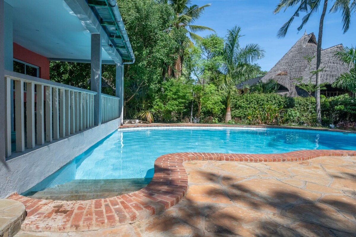 Welcome to the most affordable and serene stay in Diani Beach! 5 minutes walk from Ukunda Airstrip 5 Minutes walk to the famous Diani beach Free wifi Swimming Pool Personal Working Area Shared Kitchen Loads of Parking Space Come on, don't be shy! Book your stay now; we are waiting for you.