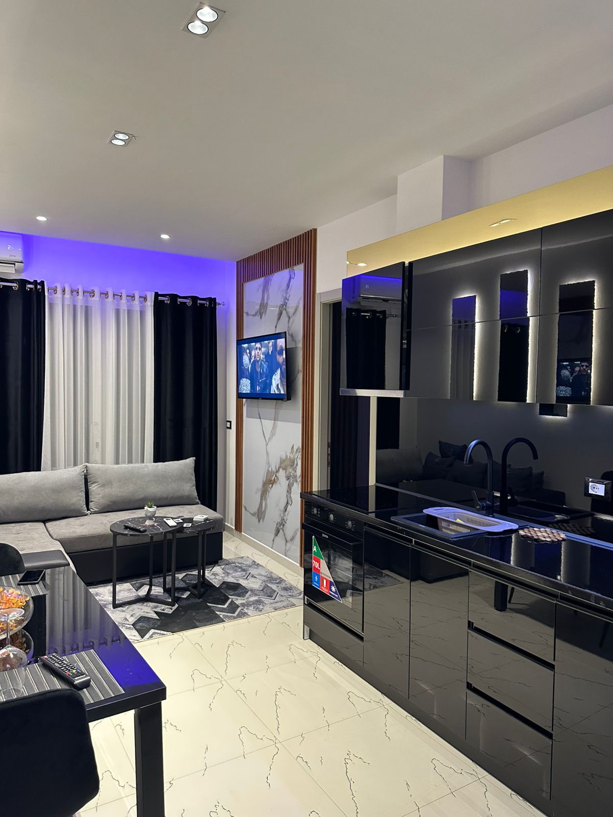 Beautifully decorated, stylish and spacious this apartment has something to offer to everyone whether you are traveling for fun or a work trip. It is located in Colombo Complex in a very hip neighborhood of Tirana. Although there are many coffee shops, bars, markets and restaurants in the area, it feels peaceful and secluded. Porcelani bus stop is 2 min walk from the apartment. Very convenient location to get to the center of Tirana: 25 min walk or 7 minutes bus ride.