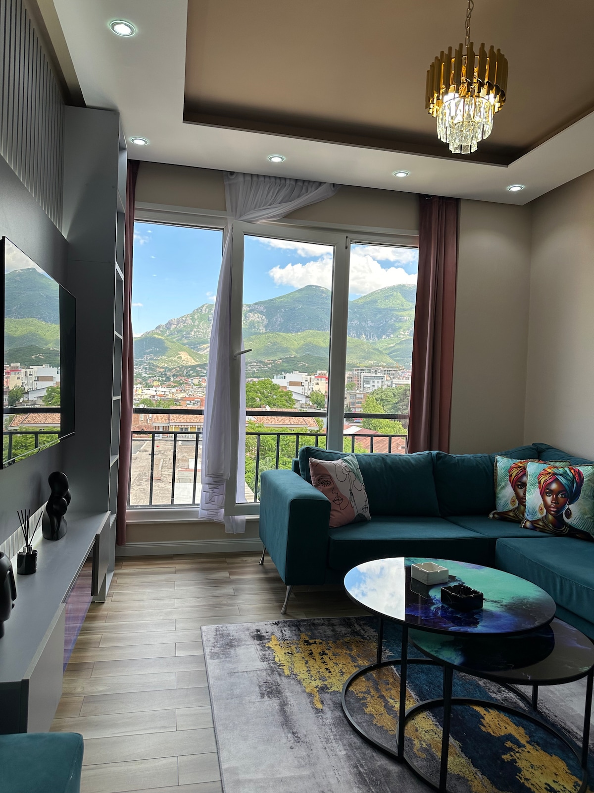 "Escape to our delightful 2-bedroom apartment in downtown Tirana, where every corner exudes warmth and charm. Wake up to breathtaking views of Dajti mountain, then savor breakfast in the modern kitchen before lounging on the balcony. With cozy bedrooms and a central location near cafes and attractions, our apartment offers a perfect blend of comfort and convenience for an unforgettable stay in Tirana."