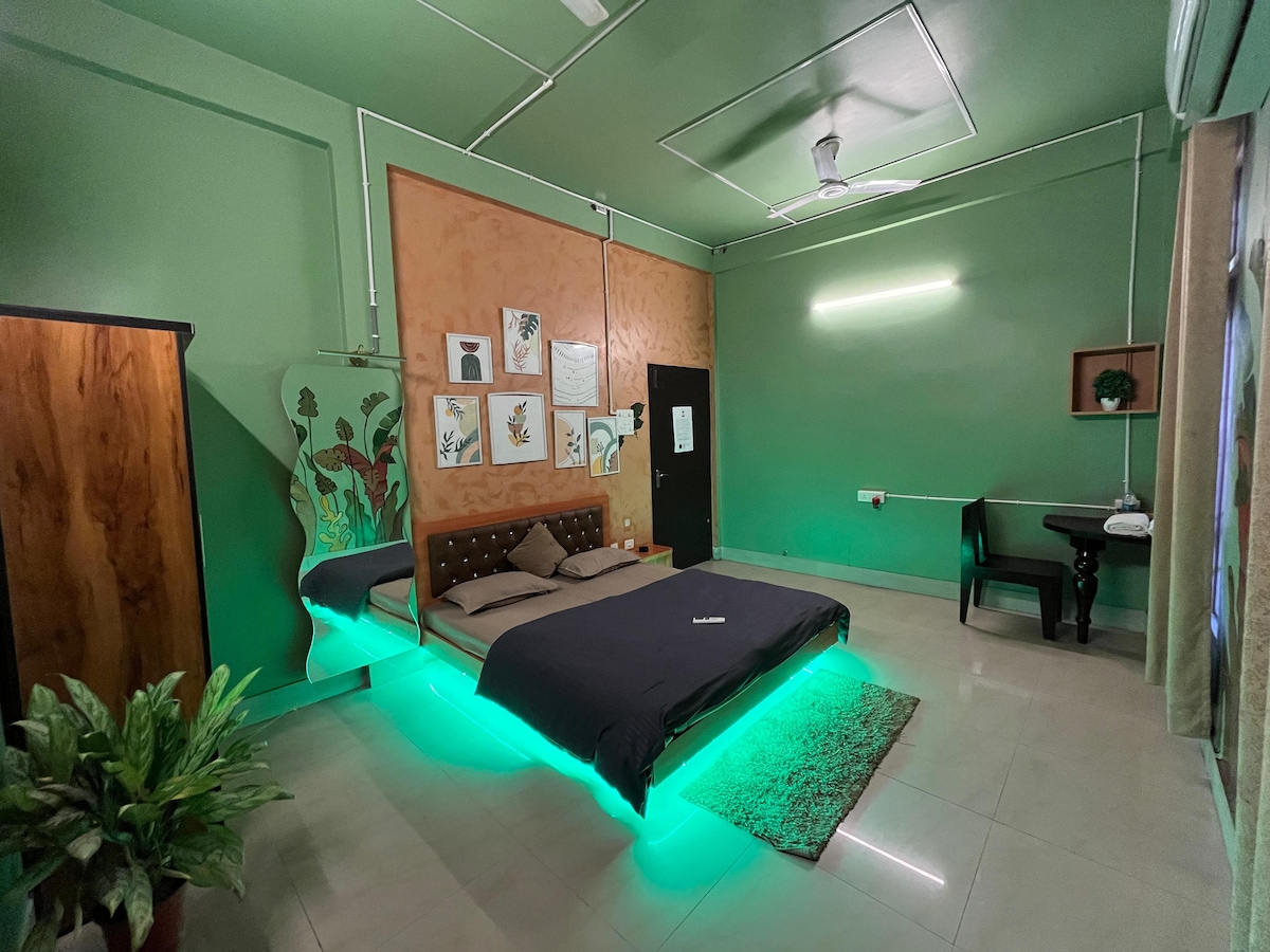 Apart from our centrally located apartment which helps in accessing all of your daily essentials. Here, in The Red Room, you'll have access to a cozy living space to hang out with your friends, plus a fully functional modular kitchen and a freezer to keep your drinks perfectly chilled. Whether you're here for relaxation or adventure we at Riverview Homestay offer you a unique and peaceful experience. We look forward to welcoming you!