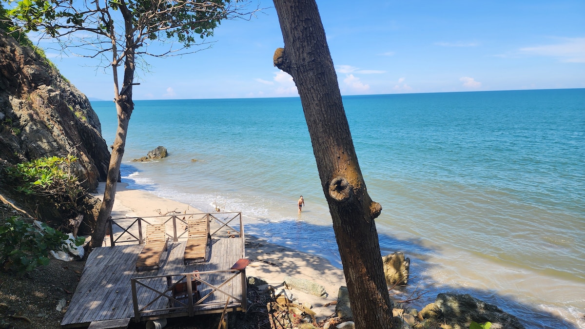 Disfruta de la privacidad y exclusividad de una casa completa, pagando solo por una suite. Ideal para hasta 6 personas, está ubicada en una casa frente al mar con salida directa a la playa, dentro de un conjunto privado rodeado de naturaleza entre la Sierra Nevada y el Caribe. Al reservar, tendrás dos habitaciones privadas y acceso exclusivo a las áreas sociales, como sala, cocina, kiosco y piscina privada, además del apoyo de una empleada que te asistirá con la limpieza y la cocina.