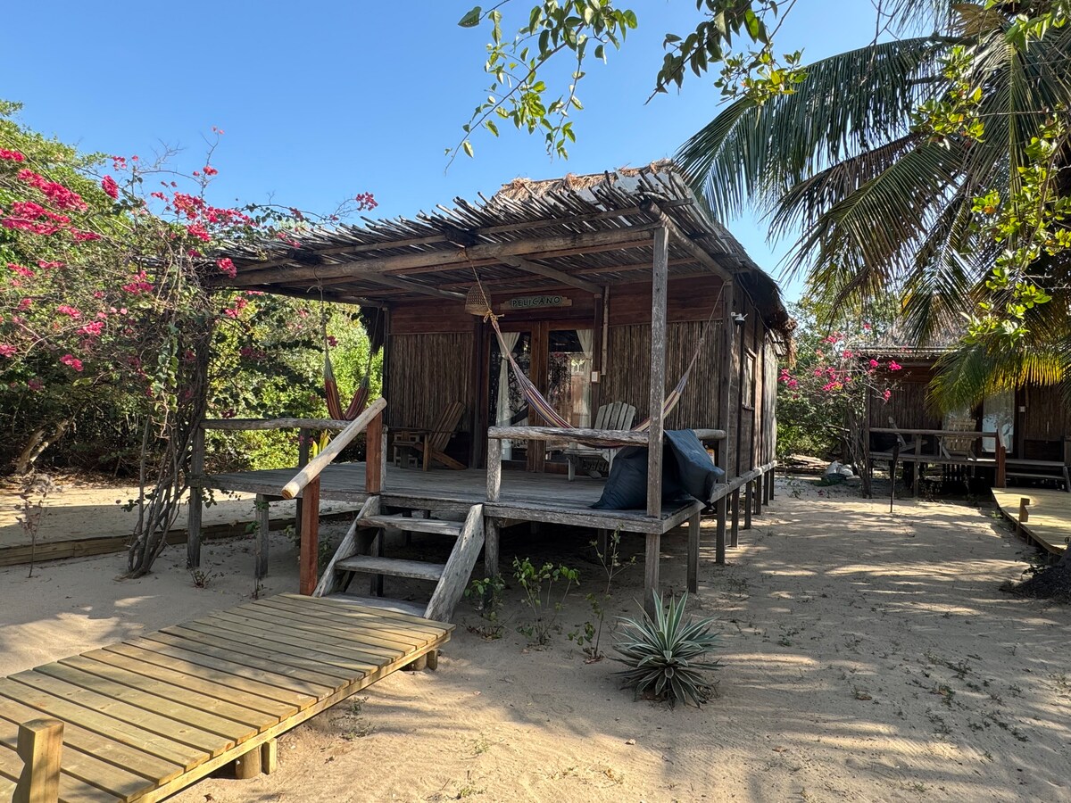 Nuestra opción más espaciosa, ideal para parejas con hijos, grupos de amigos y familias de 4 a 6 personas. 1 cama King y 2 camas sencillas (con opción de adicionar 2 camas más). Ventilador de techo, mosquiteros, baño privado con ducha a cielo abierto, terraza con mesa, sala de estar con sillas y hamacas, y vista al mar y la laguna de Mamavita.WiFi y agua potable fría.