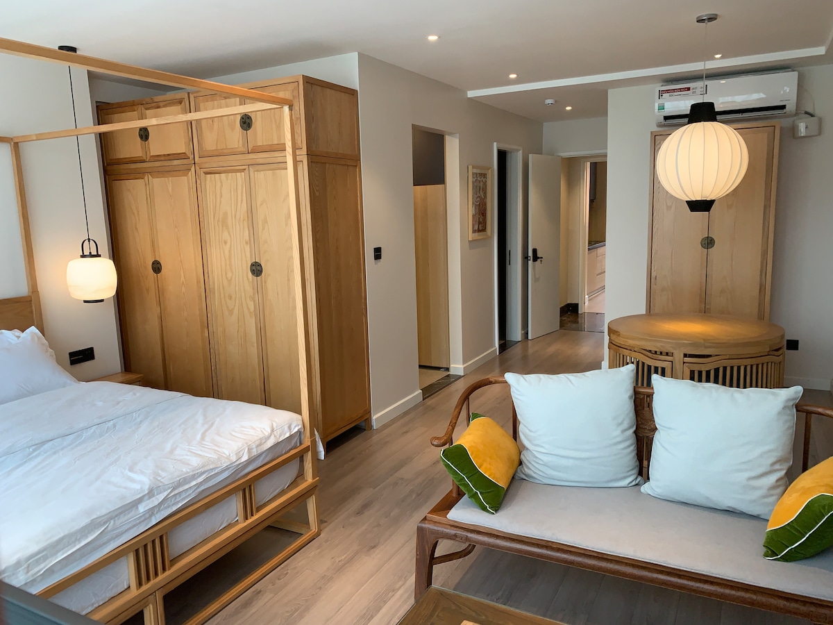 Newly remodeled, Asian inspired studio with plush king bed, tv, full kitchen, private bathroom, free parking, security guard and housekeeping service. Located on a major street, Phan Ke Binh, in the heart of Hanoi’s Japanese expat district, steps away from restaurants, cafes, Lotte department store, Daewoo hotel and Hanoi zoo.