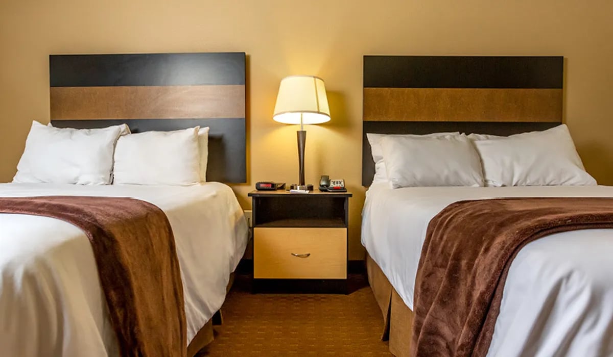 Relax in this double queen room with two clean and fresh beds. Watch premium HD channels or stream your favorite service on the TV. Surf the web with free WiFi. Catch up with work at the desk with ergonomic chair. Refresh your senses in the bathroom, complete with shower tub combo, large dressing area and plush towels. Enjoy the convenience of having a coffee maker, hair dryer, iron & ironing board in the room. Sleeps 4.