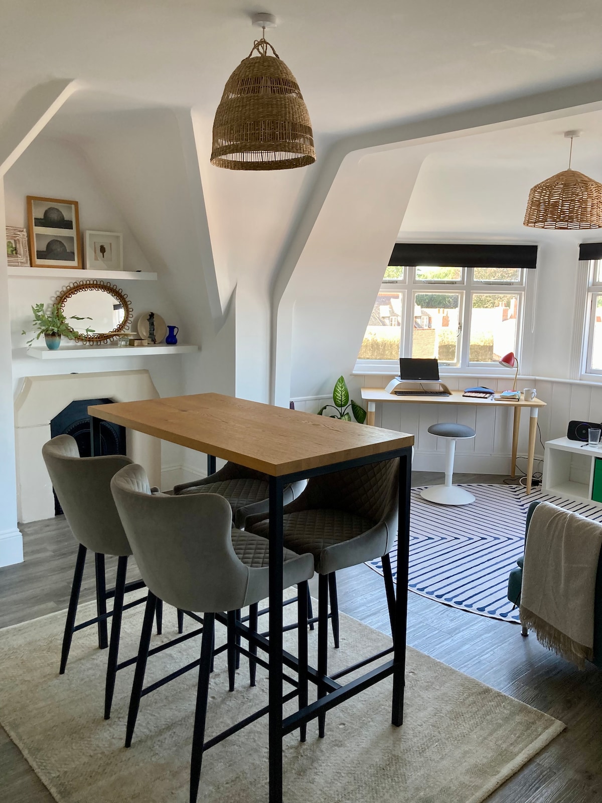 Welcome to our peaceful first-floor apartment, recently converted for quiet luxury with iconic mid-century design pieces, antique finds, and contemporary artwork from your professional artist hosts. Accessible via a wide spiral staircase, this private retreat features a spacious and comfortable sitting room with light-filled double-aspect sash windows, a balcony with idyllic paddock views, a mini-kitchen and a large separate bedroom. Perfect for couples, business travelers, sorry, no infants.