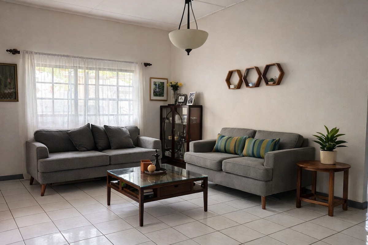 Enjoy a relaxing stay in this fully furnished and air-conditioned home, nestled in MARAVAL. Our home is fully equipped with everything you need for a comfortable stay, including cooking utensils, linens, and towels. The peaceful family-friendly neighborhood is perfect for a relaxing retreat, while still being close to local attractions and amenities. We are located 16 kms away from Maracas Beach, 3 kms away from Queens Park Savannah & the carnival activities.