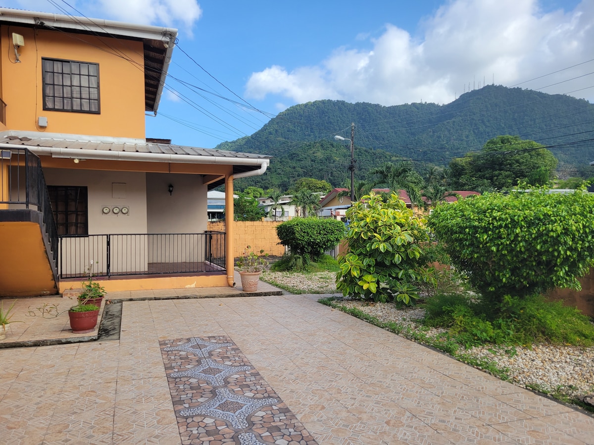 Nestled in the hills yet close to the city, unwind at our cozy, peaceful oasis with hill views, beautiful sunsets &ocean views.. Modern Ground floor apartment: 2 bedrooms each with its owndesignated workspace , Queen beds , 2 full baths, fully air conditioned, fully equipped kitchen. Washing machine & dryer, Open living space which opens on to pool deck. Ping-Pong Table, Board Games. Close proximity to POS, shopping malls, banks, cinema, grocery, Pharmacy. Access to Food delivery services