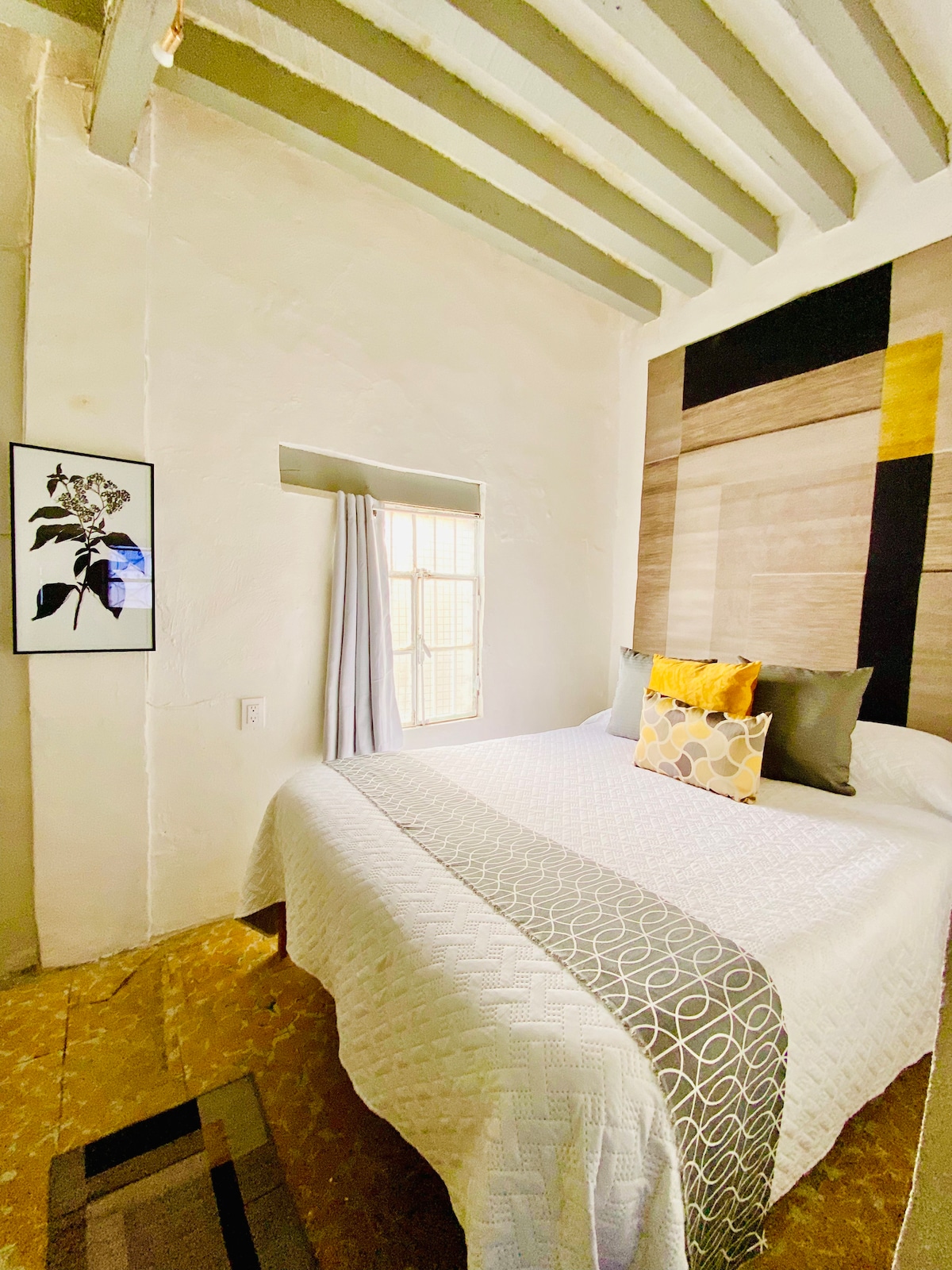 Nuestro espacio combina el encanto colonial de sus bóvedas con una selección de muebles vintage de los años 50, 60 y 80, incluyendo un refrigerador original de los años 50, con diseño streamline —una elegante corriente del art déco tardío, reconocible por sus formas curvas, líneas horizontales y estética retro-náutica. ✨ Características: • Habitación principal con cama queen • Recámara auxiliar con cama individual • Balcón privado