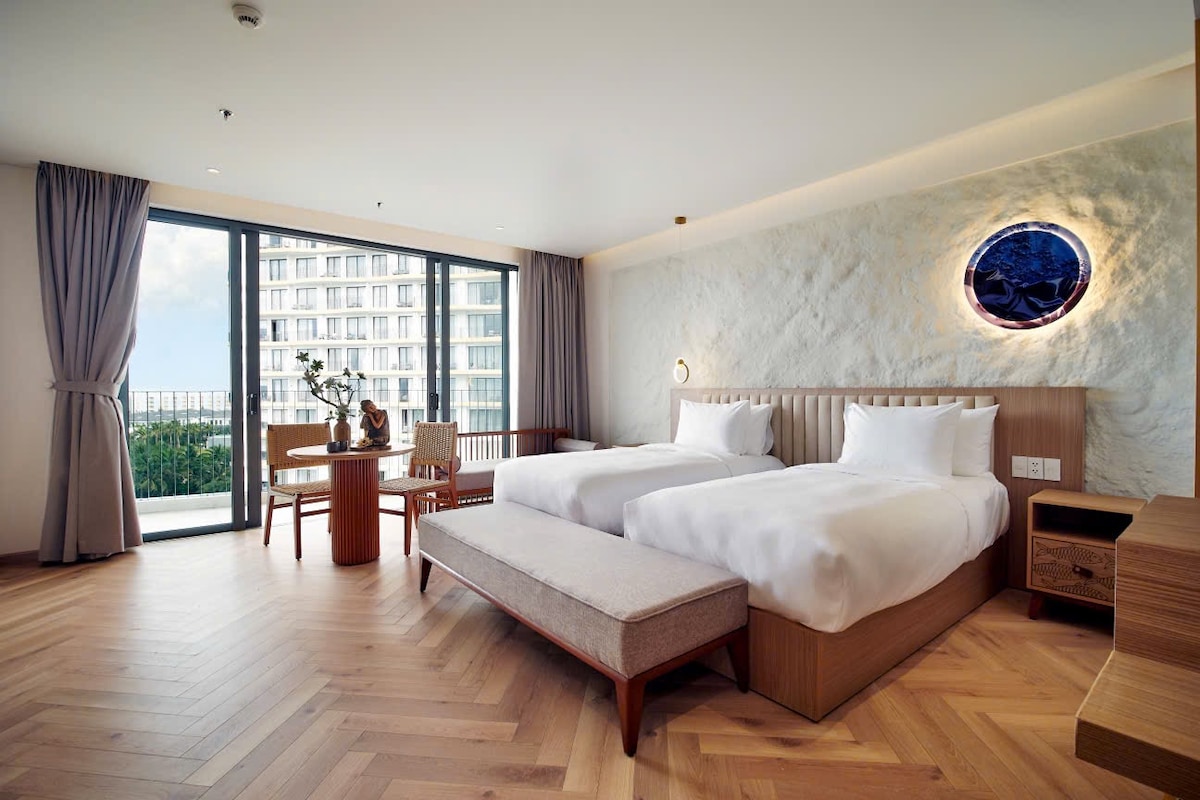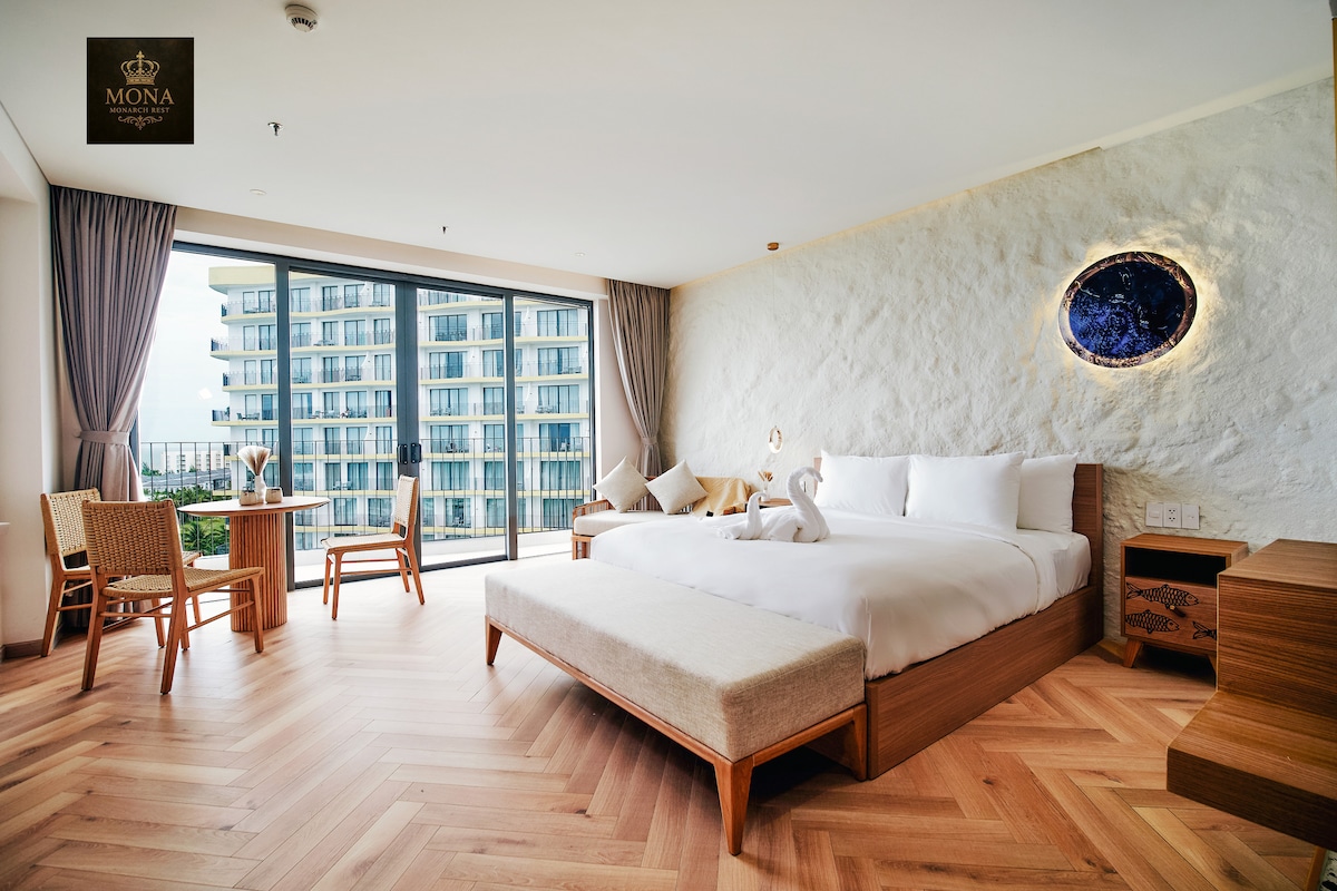Designed for relaxing getaways and extended stays, our pool & partial sea-view studio is shaped by the ocean lifestyle. Ideal for couples, families, or long-stay guests, this beachfront resort invites you to slow down, enjoy blue views, balance work and rest, and feel right at home. - Special Long-Stay Offers Weekly stays (from 7Ns): Free airport drop-off service Monthly stays (from 30Ns): Free gym access (400m from the resort) or a 70-minute Vietnamese spa treatment (one time per stay)