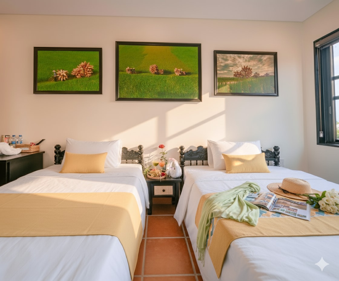 Du Yên chào đón bạn về với một góc Hội An yên bình, nơi nhịp sống chậm rãi hòa cùng thiên nhiên xanh mát. Ở Du Yên, mỗi căn phòng được chăm chút bằng sự chân thành và tinh tế, như cách người Hội An gìn giữ những giá trị xưa cũ. Du Yên là một chỗ nghỉ chân, mlà cảm giác được trở về, được thảnh thơi thưởng trà buổi sớm, lắng nghe gió ru hàng dừa và tận hưởng sự ấm áp, gần gũi như ở chính ngôi nhà của mình. Du Yên rất hân hạnh được đồng hành cùng bạn trong những ngày an yên tại Hội An.