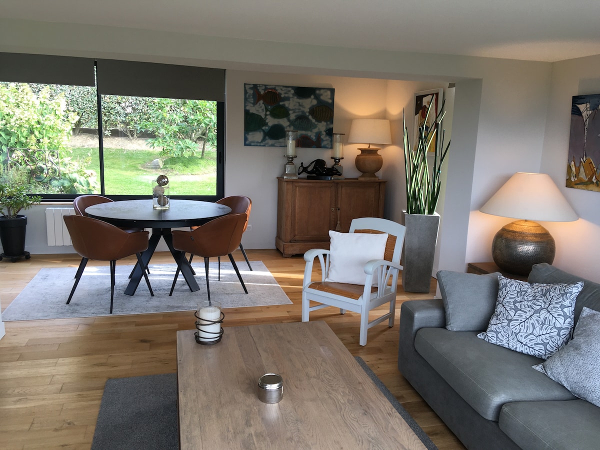 Muriel vous accueille dans sa chambre d’hôtes, avec une vue exceptionnelle, sur la mer, la campagne et la valleuse de Mordal, dans un environnement verdoyant et très calme. Chambre de 20 m², de plain-pied, avec grand dressing, entourée d’une terrasse ensoleillée avec transats et salon de jardin. Salle de bain avec douche à l’italienne. Petit déjeuner continental pouvant être pris sur les terrasses ou à l’intérieur vue mer et jardin paysager. Local fermé à clé pour les vélos. Pas d’animaux.