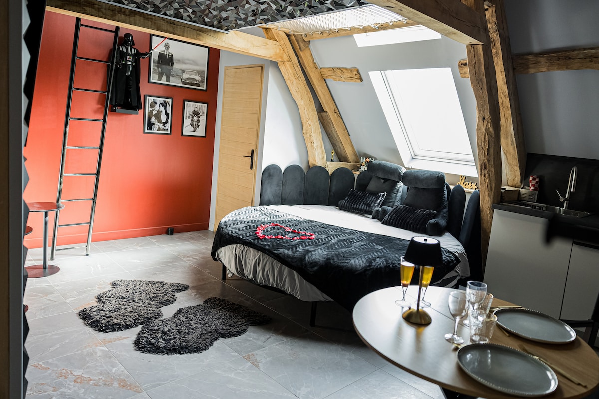 The Ruby Lodge est l'accord parfait entre la Loveroom et le gite.✨️ Un endroit insolite entièrement équipé pour vous faire vivre un séjour inoubliable. SPA, Sauna, table de massage, douche insolite, lit XXL et bien d'autre équipement seront présent pour apportez le luxe et le confort que vous recherchez.⚘️ Situez dans un petit village de Normandie, ce gite vous offre également un terrain et un patio couvert pour profitez de l'extérieur. Un séjours inoubliables dans un endroit hors du commun.