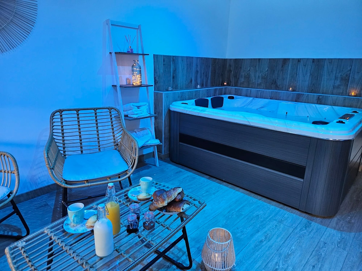 Nous vous proposons une expérience unique dans une maison de 60m2 avec de nombreux équipements bien-être (sauna INFRAROUGE, baignoire balnéothérapie, siège massant 360° ) à l'étage vous disposez d'une chambre avec un grand lit King size 180x200 et le petit plus dans cette escapade romantique sera sa pièce secrète complètement envoûtante(fauteuil tantra, miroir, croix de st André) Vous aurez accès à une cuisine entièrement équipée (four, micro-onde, dolce gusto, bouilloire) Petit- déjeuner inclus
