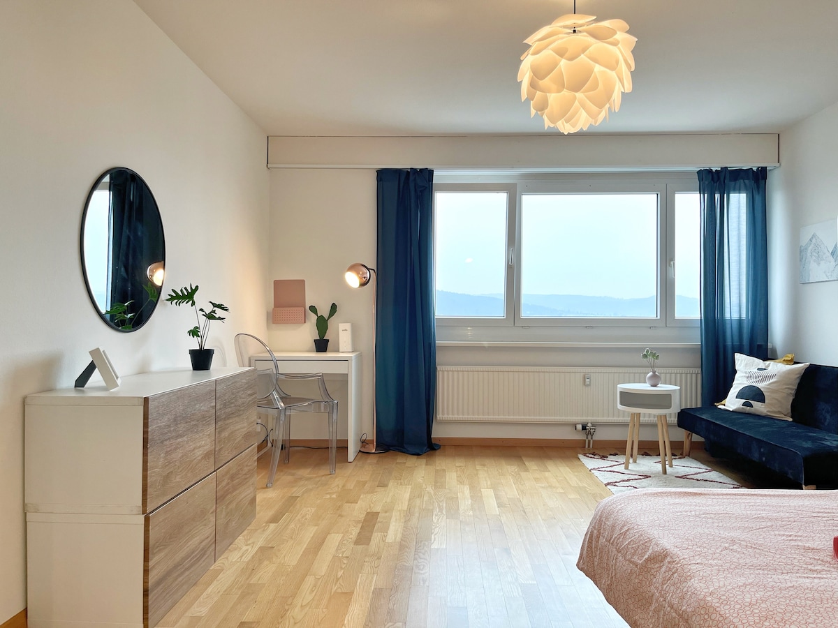 Peaceful 2-room apartment at the edge of a forest, just 20 driving minutes from Zurich. Perfect for nature lovers seeking a quiet retreat. South-facing balcony with stunning valley views. King-size bed in the bedroom, plus a sofa in the living room. Slow WiFi for a true escape. Nearby: pizzeria, tennis club, and pony rides. Great for hiking and nature walks. Easy access to the highway (5 min). Not prepared to accomodate kids under 10. No noise, parties, pets, or smoking.