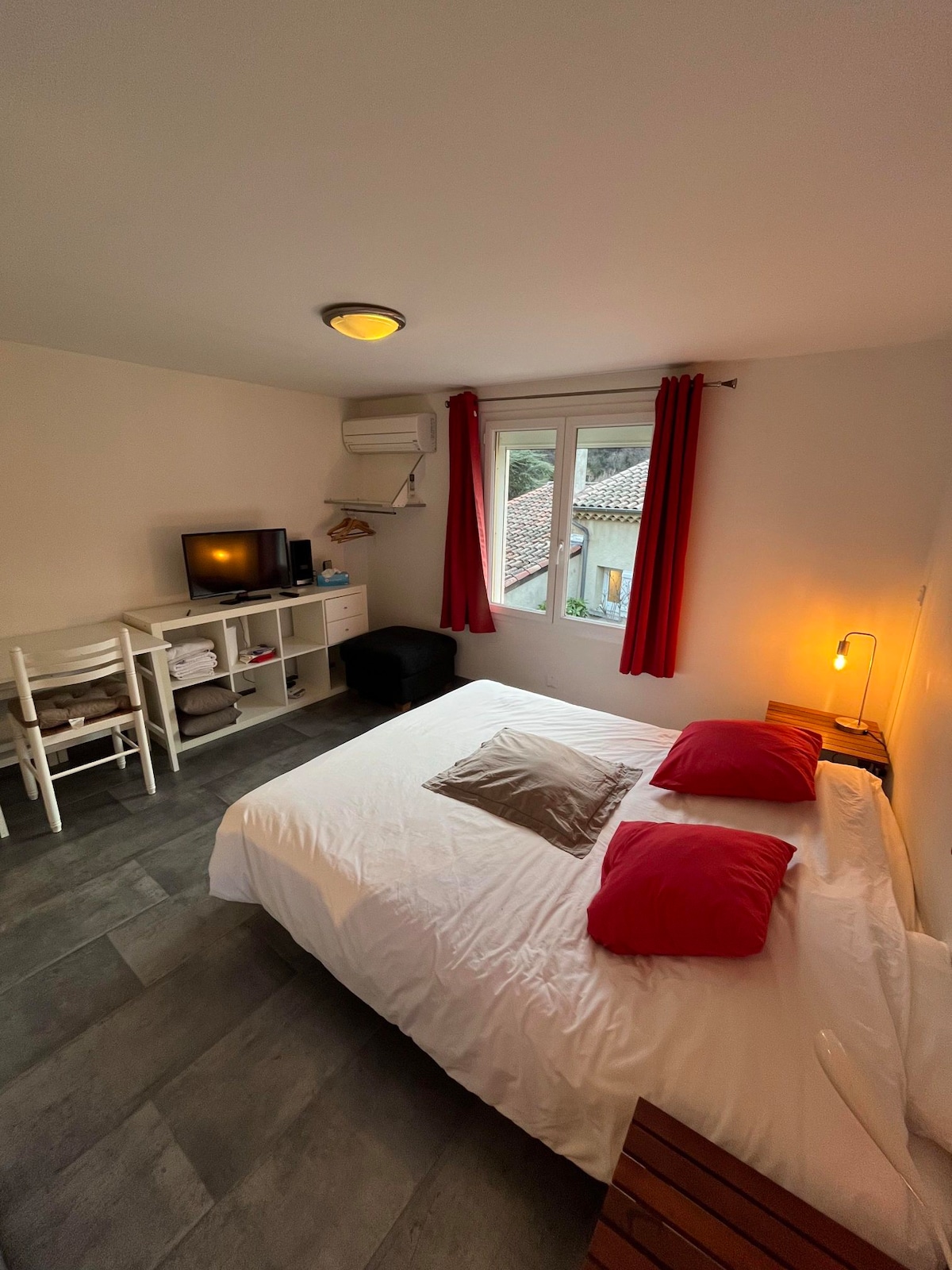 Bienvenue au Studio Sous les pins, en Drôme Provençale, entre campagne et foret. Ce studio climatisé très lumineux de 13m2 se compose d'une pièce de vie avec cuisine équipée d'un mini réfrigérateur, un vrai four faisant micro-ondes, plaque de cuisson, cafetière, etc... Vous aurez une salle de bain avec douche ainsi qu'un WC. Terrasse privative exposé Sud Ouest donnant sur le parc arboré. Espace Jacuzzi (en supplément 50 euros/jour)