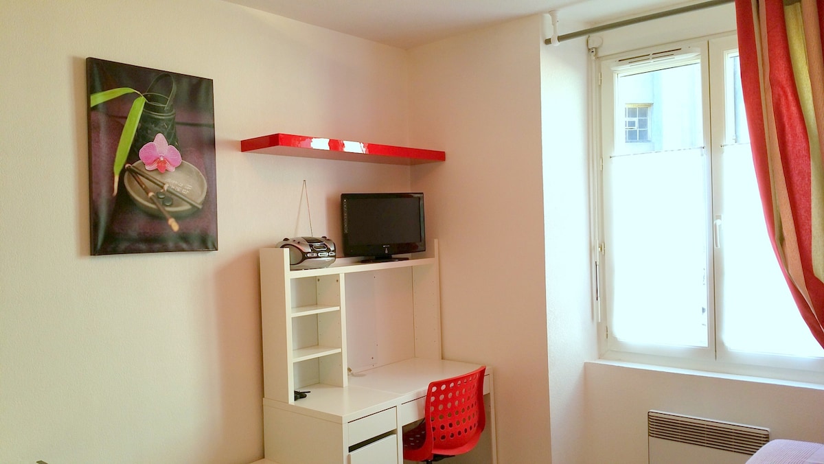 Studio 18 m2, bien équipé ,très fonctionnel. A 500m du centre ville ou du plan d'eau. Les Thermes :3,6Km, les pistes de ski: 40minutes! Promenades à pieds ou à vélo ,cinémas et piscine municipale à proximité! Accès internet , télévision TNT ,animaux acceptés.Avec la tranquilité et une jolie vue...