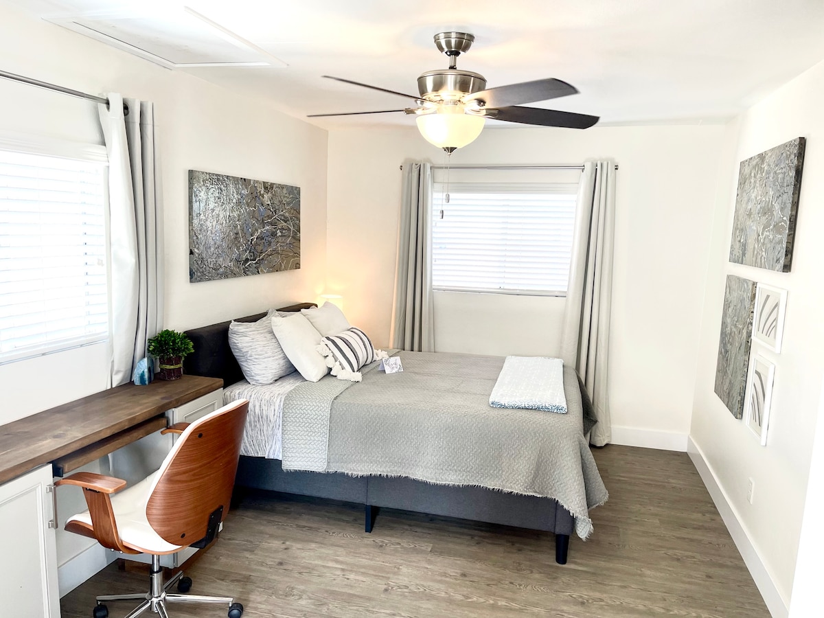 Fully furnished, detached second unit bungalow in the heart of Central Bakersfield. Just minutes from downtown, local colleges, Hwy 99/Hwy 58/Westside Parkway, new restaurants, and more! Completely private entrance, with self check-in. Our home is great for a quick trip or a long term stay, either way we can accommodate you.