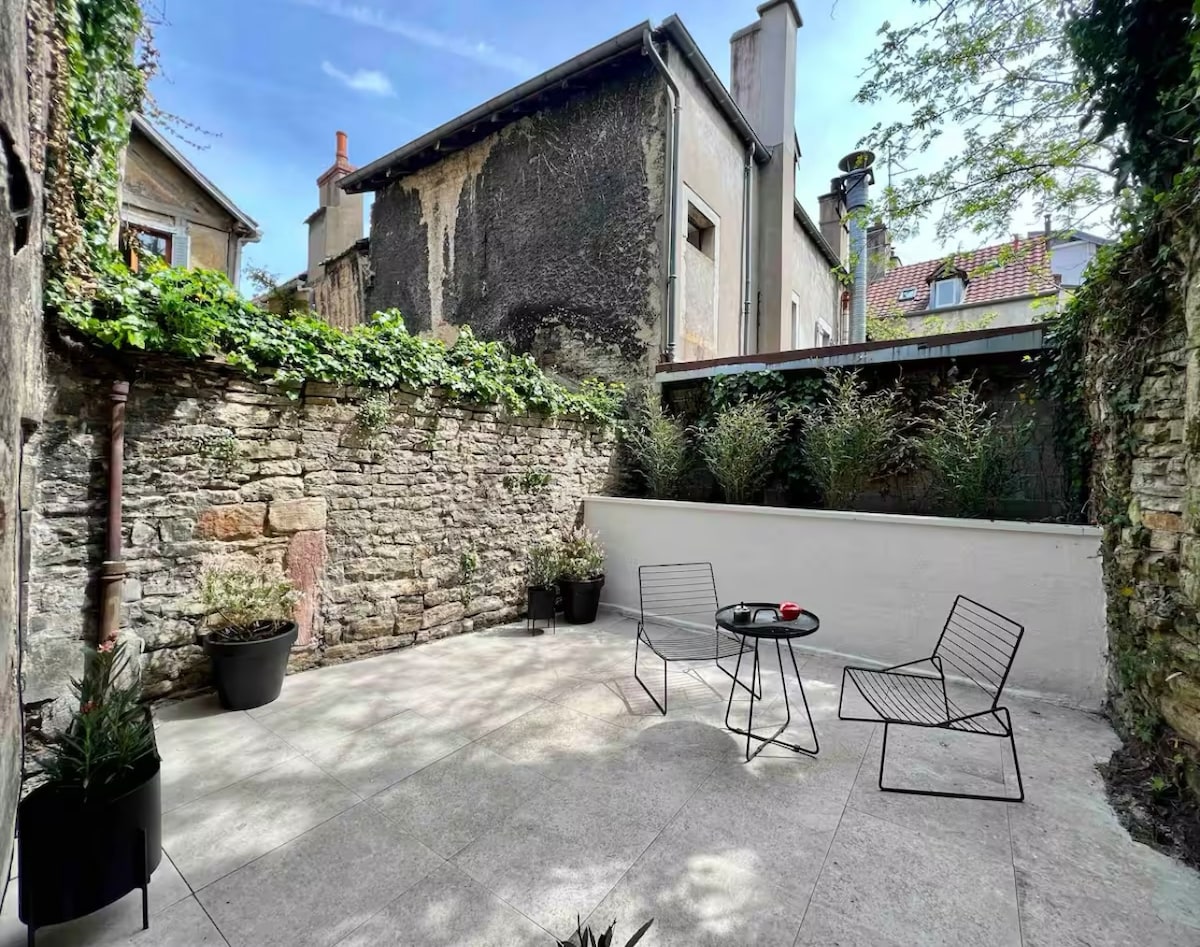 Appartement de 90 m2 au RdC au centre ville de Dijon, dans le quartier des antiquaires, près de la célèbre "chouette" de Dijon et du palais des ducs de Bourgogne, dans une rue calme sans commerce ni bar avec peu de passage. Entrée privative. Cour privative avec coin repas. Cave voutée pour dégustation de vin de Bourgogne ; jeu de fléchette ; avec enceinte Bluetooth.