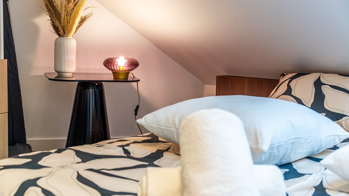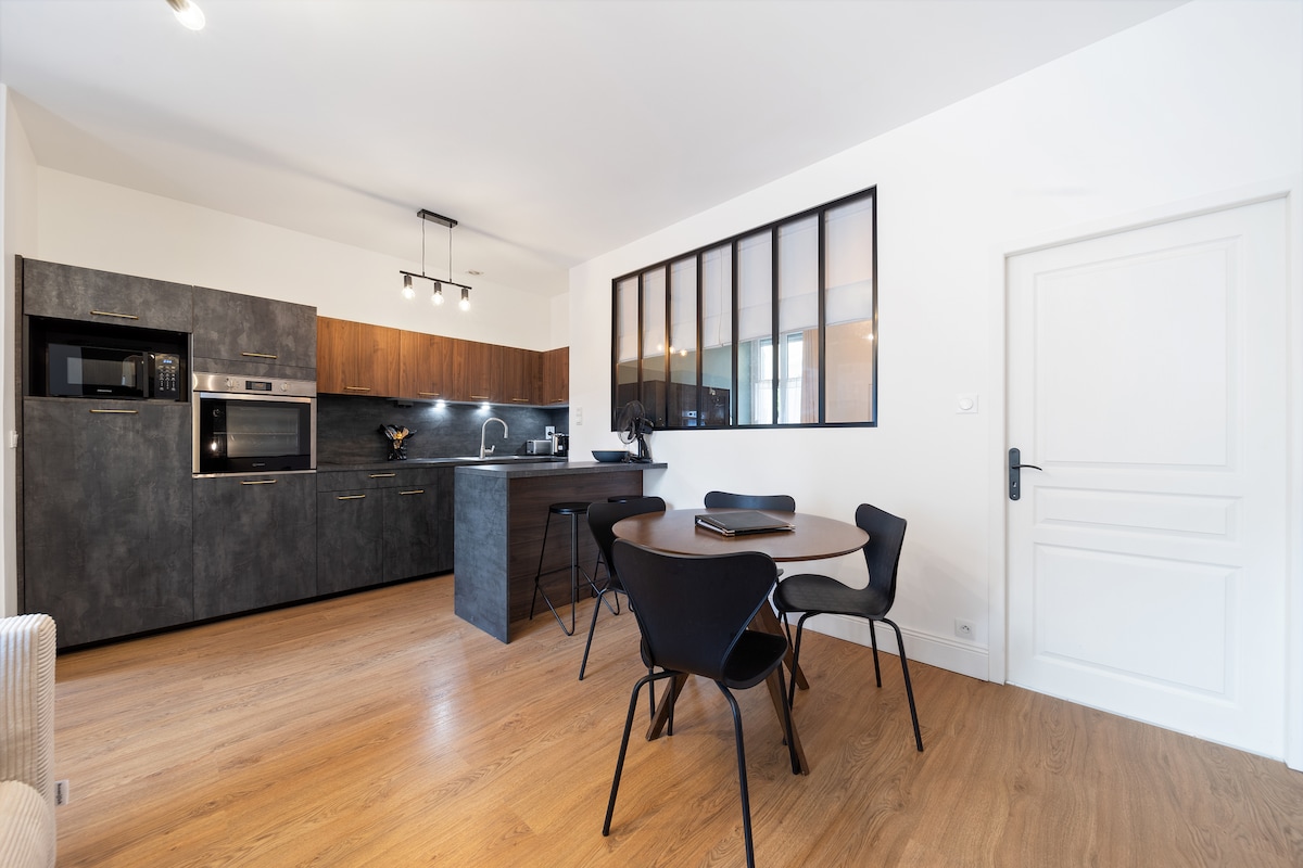 Nous avons entièrement rénové notre appartement en plein centre ville pour en faire un espace chaleureux et agréable à vivre. Tout est pensé pour votre confort : un salon accueillant, une cuisine équipée, une chambre avec une literie confortable et une salle de bain moderne. Vous y trouverez tout le nécessaire pour un séjour sans souci : WiFi, machine à laver, sèche-cheveux… Que vous soyez en voyage ou en déplacement, nous serons ravis de vous accueillir !