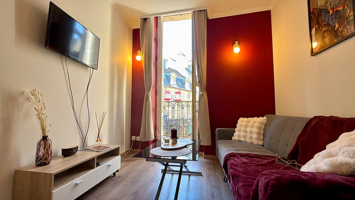 Enjoy my accommodation for its unique location in the heart of the most picturesque pedestrian street in Dijon Historic Centre (2 steps from the famous owl). Charming Bright studio of 35 m2, renovated, will seduce you with its romantic decoration and fully equipped. A small and lovely terrace with a view over the roofs of Burgundy. Your perfect home, for one or two people, to easily discover all the wonders of Dijon. ! The apartment is located on the 3rd floor without elevator.