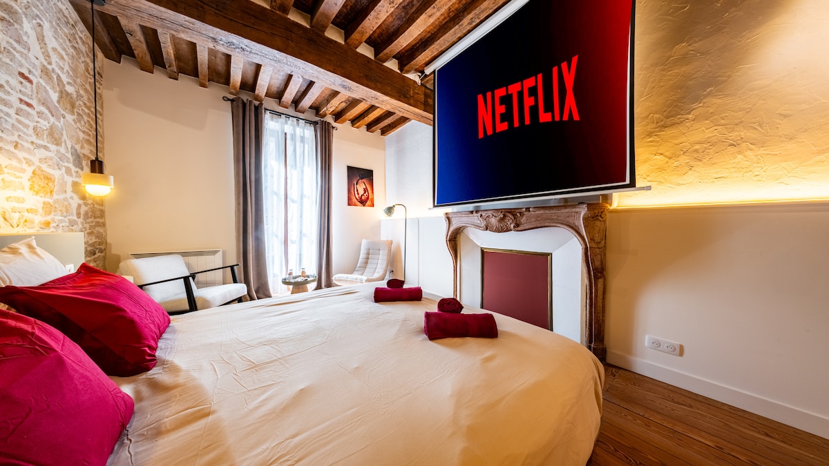 Dans une résidence privée, le duplex peut accueillir jusqu'à 4 voyageurs avec à l'étage une grande chambre (lit queen size, vidéo projecteur avec Netflix et Disney +) et une spacieuse salle de bain avec baignoire à remous. Vous disposez d'un canapé convertible avec matelas pour une qualité de couchage optimale. La terrasse avec barbecue vous permettra de profiter par beaux temps d'un repas à l'extérieur. Proche de toutes commodités (restaurants, bars, supermarchés, tabac, boulangerie).