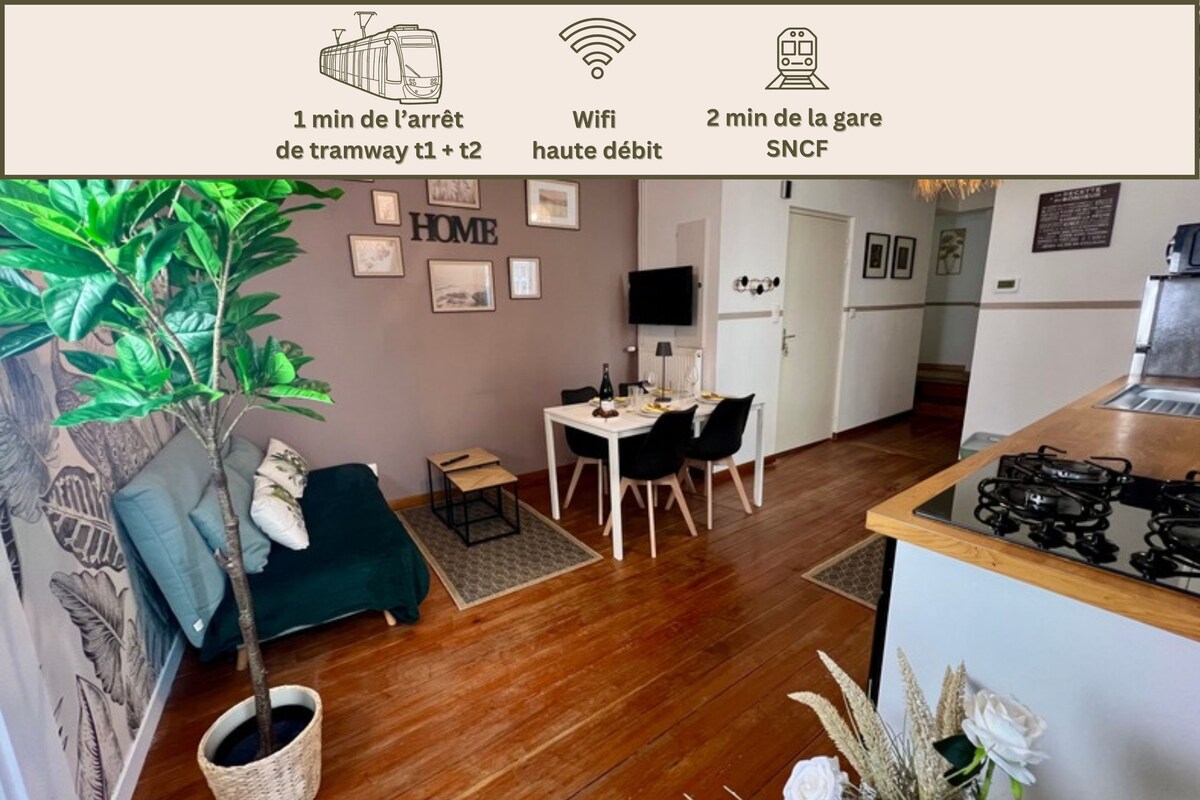 Logement situé à côté du magnifique jardin de l'arquebuse, derrière la gare. Vous trouverez à la Cité de la Gastronomie à 3 min du logement de nombreux commerces : supérette, boulangeries, boucherie, restaurants, épicerie fine, cinéma. Le Centre ville se situe à moins de 10 min, le tout à pied. Ideal pour aller à la découverte de la ville. Arrivée autonome 24h/24 (boîte à clé). ⚠️ ⚠️⚠️ Appartement situé derrière la gare, très bonne isolation mais de très légères nuisances sonores .