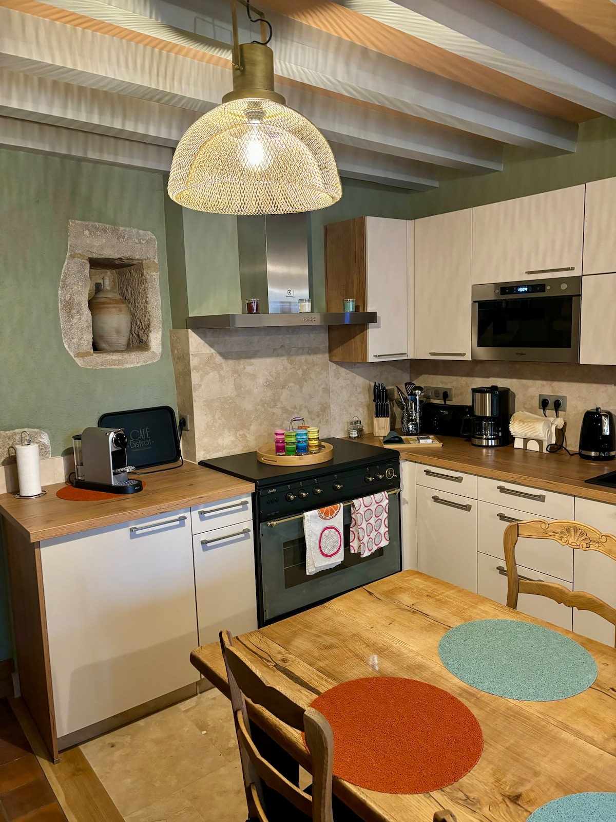 Situé au rez de chaussée d'un immeuble du 17 ème siècle, le logement a été entièrement rénové, tout en conservant le charme des vieilles pierres, des plafonds à la française et des anciennes menuiseries. -Attention: Une seule chambre est disponible en cas de réservation pour 1 ou 2 personnes. Si vous êtes deux et si vous désirez disposer chacun de votre chambre, veuillez réserver sur le site pour 3 personnes. On y entre directement depuis la terrasse, le parking, juste à coté est privé.
