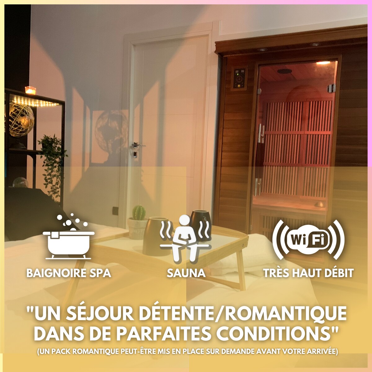 ✨ Évadez-vous dans un lieu hors du commun, où luxe et sensualité se rencontrent. Balnéo privative, sauna, fauteuil tantra et coin jeux de société vous invitent à la détente et au plaisir. Laissez-vous surprendre par une expérience immersive unique : Un jeu d’énigmes mystérieux conçu pour vous plonger dans une aventure intime et pleine de surprises. Dans ce cadre raffiné, tout est pensé pour les couples en quête de complicité : une ambiance chic, des lumières douces et un confort haut de gamme.
