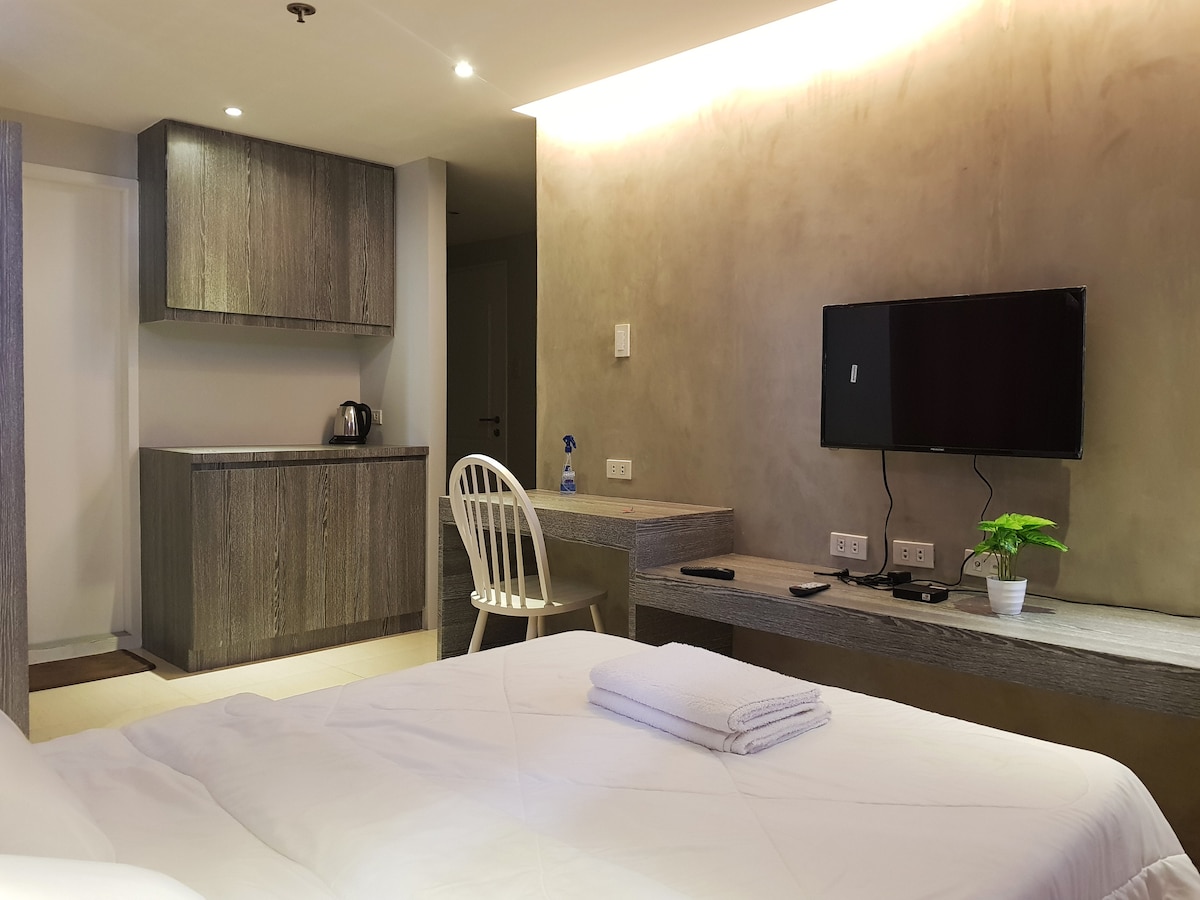 1卧室设计师公寓,位于BGC上城区,带阳台景观,400 MB洗衣机