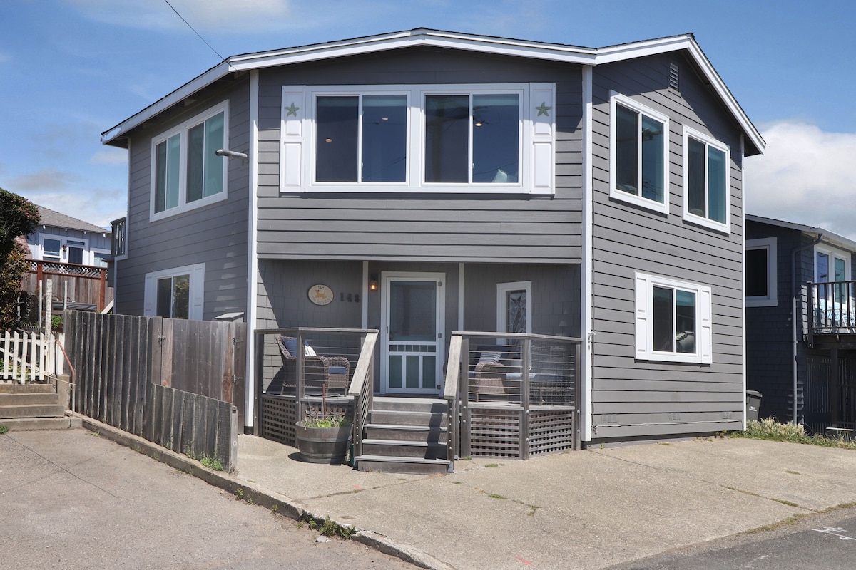 A beautifully maintained, open and spacious beach house just steps from the beach. Enjoy a short 400 ft walk to the beach or take in panoramic ocean views from large windows at back of the house or outside back deck. There are added views of open green space with lush rolling hills from large front windows and front fenced deck. Enjoy tranquil moments on the back balcony or front enclosed deck, where gentle visits from deer add a touch of enchantment to your evenings.