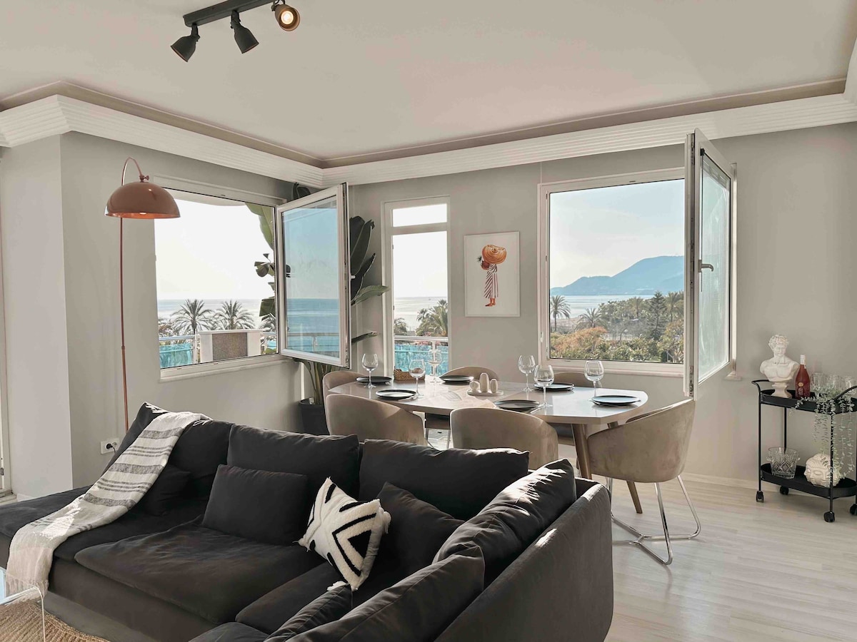 "Officially Licensed for short-term rental" Welcome to the Beach Haven, your relaxing vacation getaway place. This luxurious sea-view apartment lives directly on the coastline of Alanya -Outdoor pool ✔ -Indoor heated pool ✔ -Kids area ✔ -Garden ✔ -Turkish Hammam and Sauna ✔ -Gym ✔ -Private tunnel Beach access with sunbeds and umbrellas ✔ -TV, WIFI ✔ -24 hours security ✔ -Zero meters to the beach ✔ -Sea and mountain views ✔