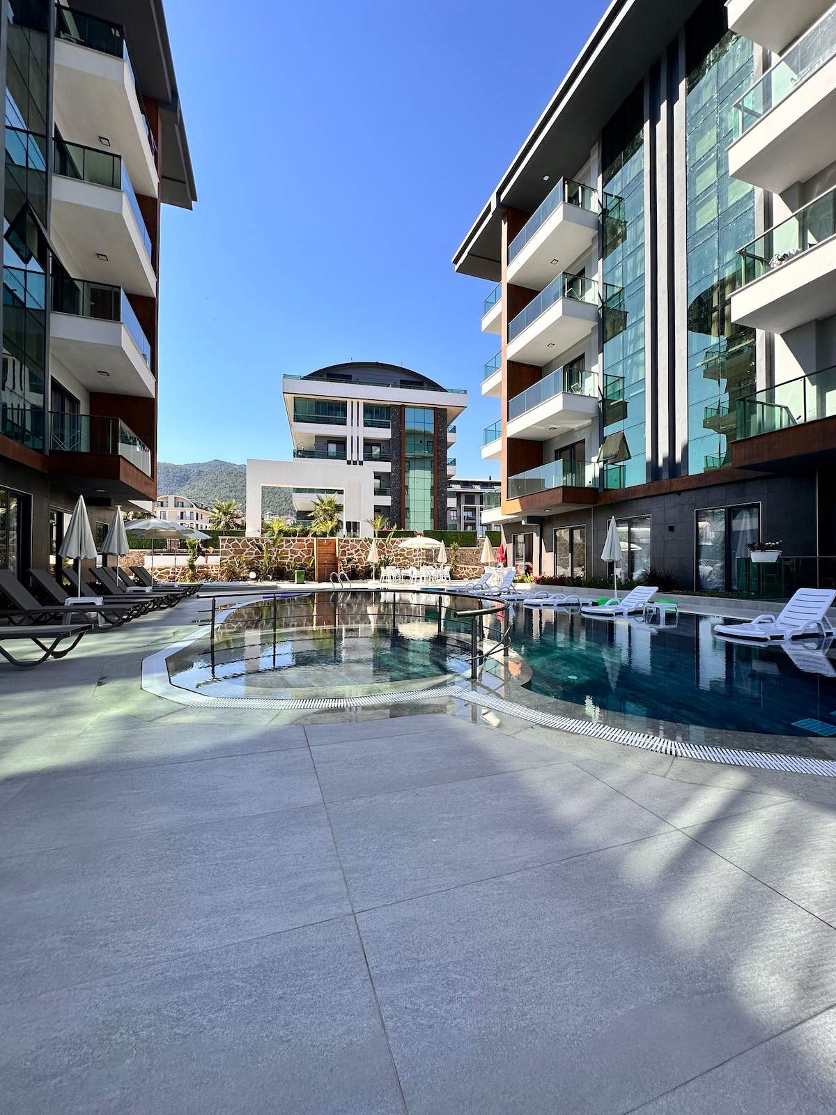 Lovely Beachfront 1 +1 Apt. Lexus Residence (70m2)  With new Furniture, Beach access and sea view. All season full activities with big balcony to enjoy your morning coffee and meals Smart Key Self Check in 7 km to Center & 35 km to Gazipasa Airport.  Depending on season Large indoor & outdoor pool, Fitness, Water Slide, Tennis Court, Game room, Cinema Salon, Children's playroom. Party room, BBQ area & 7/24 Security (Turkish Bat and Sauna is open on weekends)