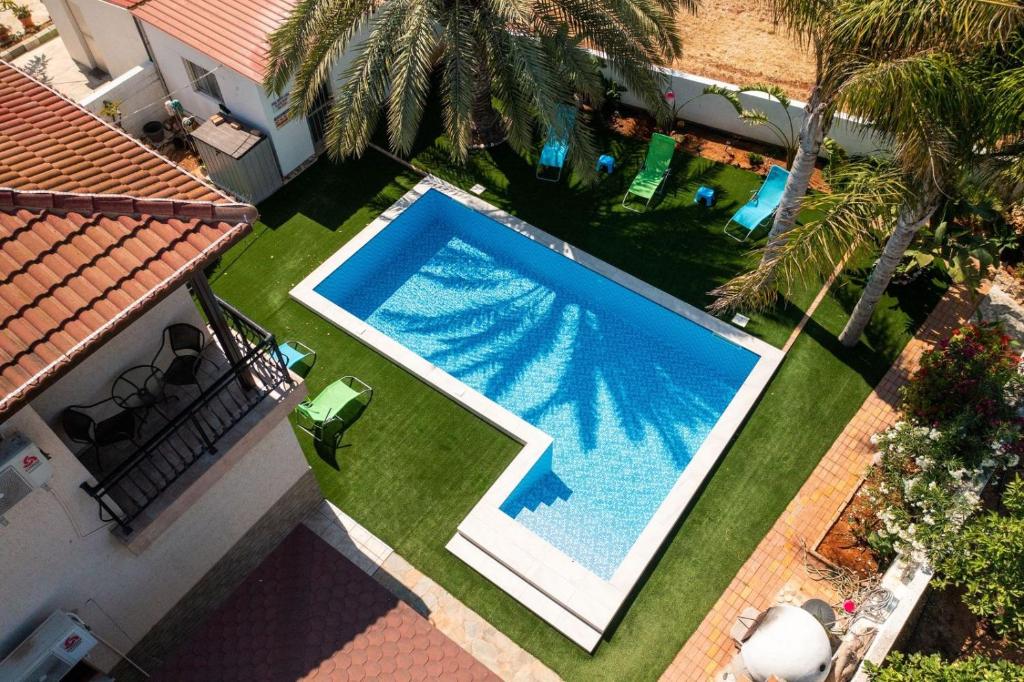 Located within the Ayia Thekla district in Ayia Napa, Villa Palm Calm Villa has air conditioning, a patio, garden views.This holiday home has a private pool, a garden, barbecue facilities, free WiFi and private parking. The holiday home features 3 bedrooms, a flat-screen TV with satellite channels, an equipped kitchen with a dishwasher, a microwave, a washing machine, and 2 bathrooms with a shower. The Villa is 10 min drive to Nissi beach, 500 meters from the sea. Water Park is 2.7 miles away