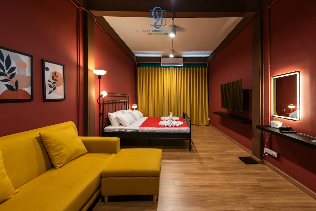 This is 13.5 sq.m private room , has 1 queen size bed and private bathroom (built-in). Flat screen and air conditioner. We renovated our place from old Chinese shop house. The interior decoration is inspired by local Thai- Chinese living style. The building has 2 story with additional rooftop balcony. Our location is in Chinatown area( around 100 meter to Wat Mongkhon station (MRT). The name of the building is Live Local Yaowarat Cafe & Hotel.