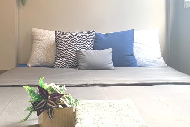 Nila Apartment301 is newly renovated room with premium king size bed. The room is spacious and come with little window seat, all rooms come with 50" smart TV with NETFLIX and Disney+ for guests to enjoy after a long day. The rain shower and bathroom are seperated to comfortably accomodated guests. Common area are located on 2nd floor where guest can use a shared kitchen, dinning area and even free laundry. Complimentary snack, coffee/tea and filtered water are provided all day.