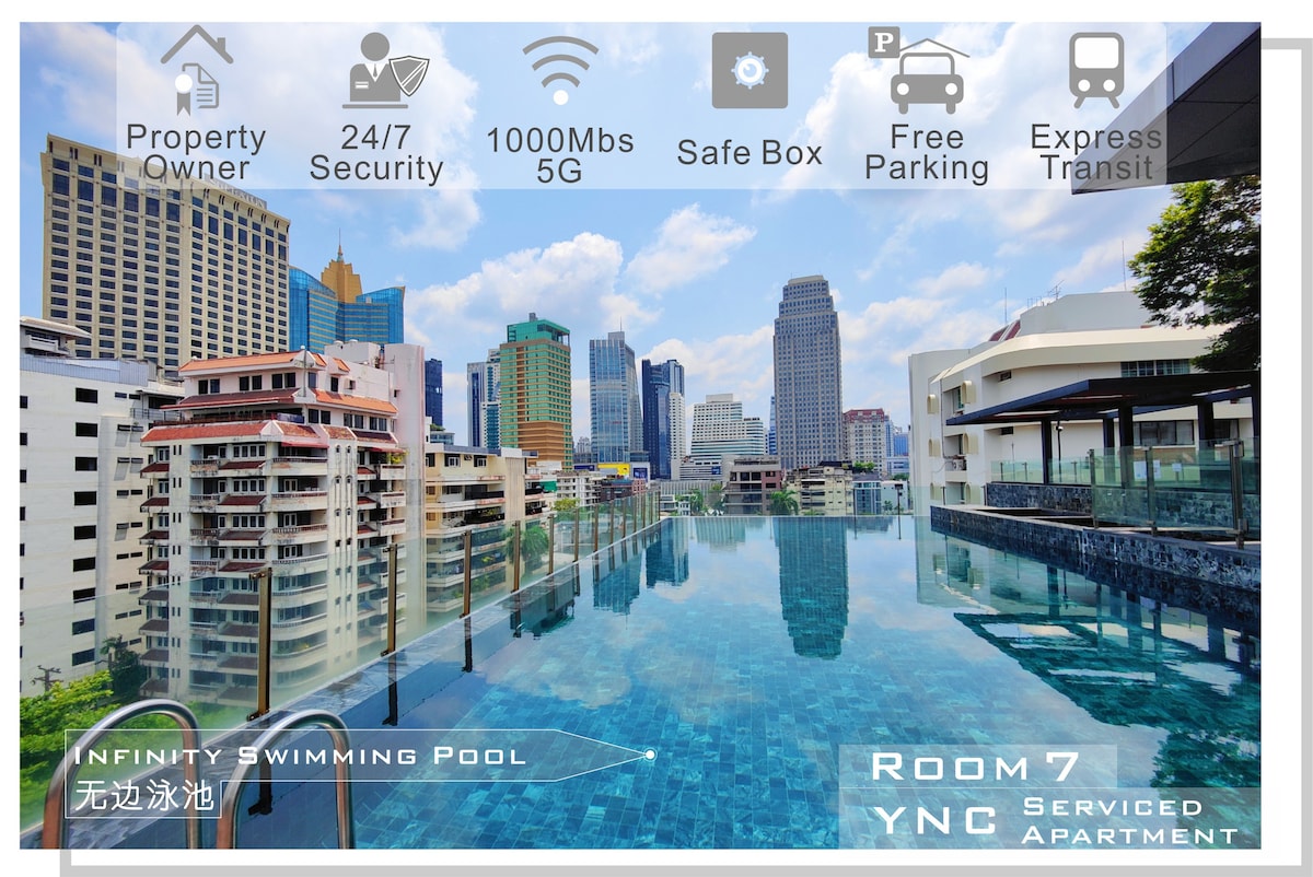 Free airport transfer,近地铁和夜市,豪华电动沙发,超大泳池,高级健身房